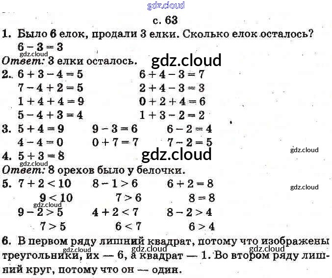 Ответ на задание 63 Учебник Математика за 1 (первый) класс Богданович, Лишенко 2012