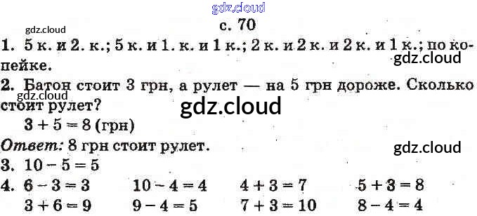 Ответ на задание 70 Учебник Математика за 1 (первый) класс Богданович, Лишенко 2012