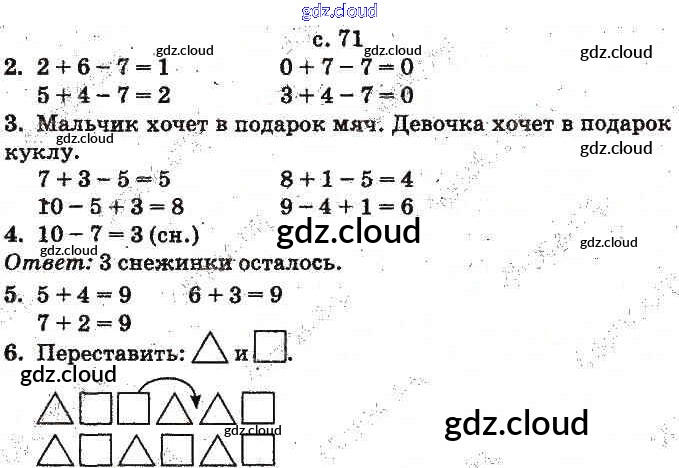 Ответ на задание 71 Учебник Математика за 1 (первый) класс Богданович, Лишенко 2012