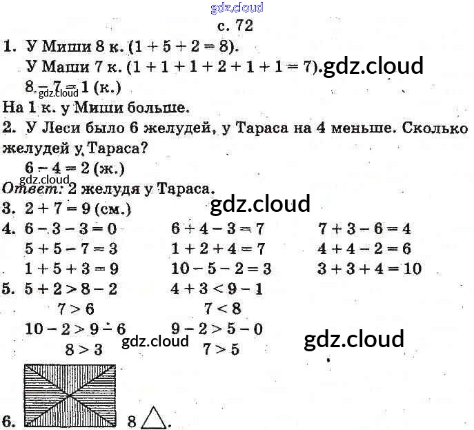 Ответ на задание 72 Учебник Математика за 1 (первый) класс Богданович, Лишенко 2012
