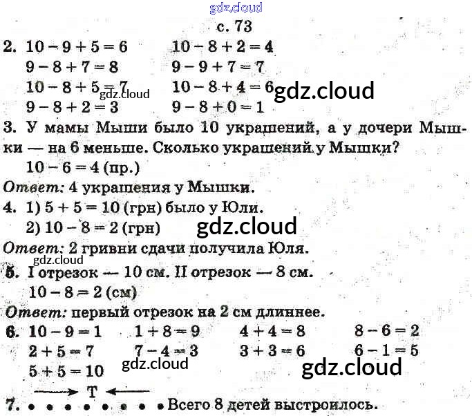 Ответ на задание 73 Учебник Математика за 1 (первый) класс Богданович, Лишенко 2012