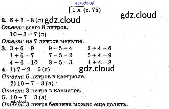 Ответ на задание 75 Учебник Математика за 1 (первый) класс Богданович, Лишенко 2012