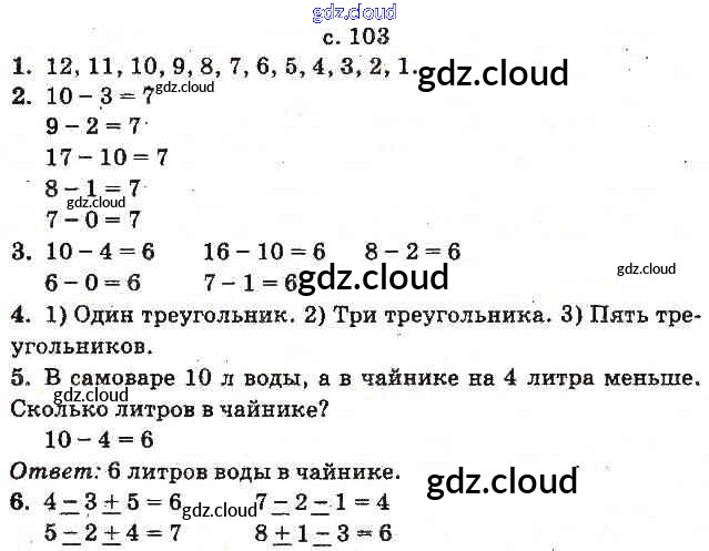 Ответ на задание 103 Учебник Математика за 1 (первый) класс Богданович, Лишенко 2012 онлайн и без номера телефона.