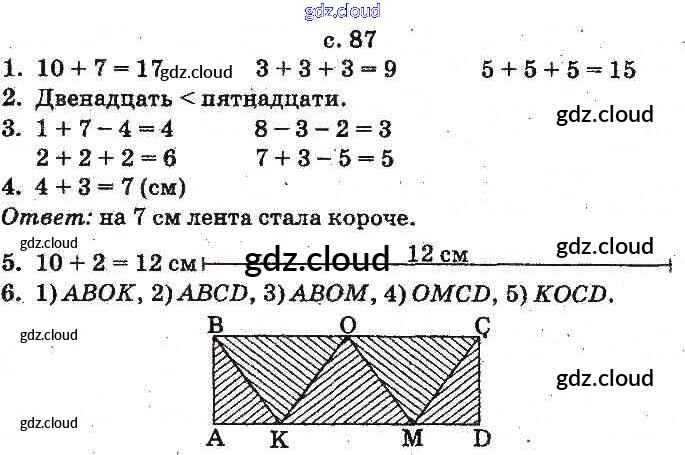 Ответ на задание 87 Учебник Математика за 1 (первый) класс Богданович, Лишенко 2012 онлайн и без номера телефона.