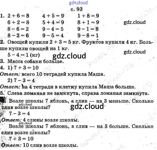 Ответ на задание 93 Учебник Математика за 1 (первый) класс Богданович, Лишенко 2012 онлайн и без номера телефона.