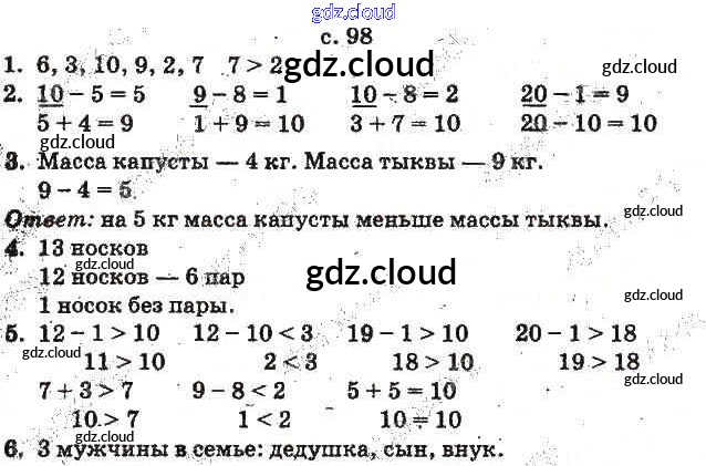 Ответ на задание 98 Учебник Математика за 1 (первый) класс Богданович, Лишенко 2012 онлайн и без номера телефона.