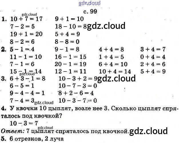 Ответ на задание 99 Учебник Математика за 1 (первый) класс Богданович, Лишенко 2012 онлайн и без номера телефона.