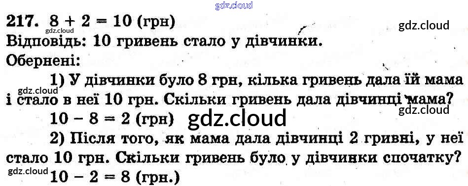 Ответ на задание 217 Учебник Математика за 1 (первый) класс Богданович, Лишенко 2012