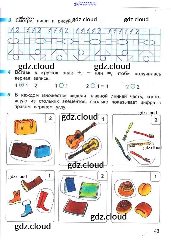 Ответ на задание 43 Рабочая тетрадь Математика за 1 (первый) класс Дорофеев, Миракова, Бука Перспектива 2016 Часть 1, 2