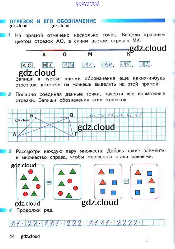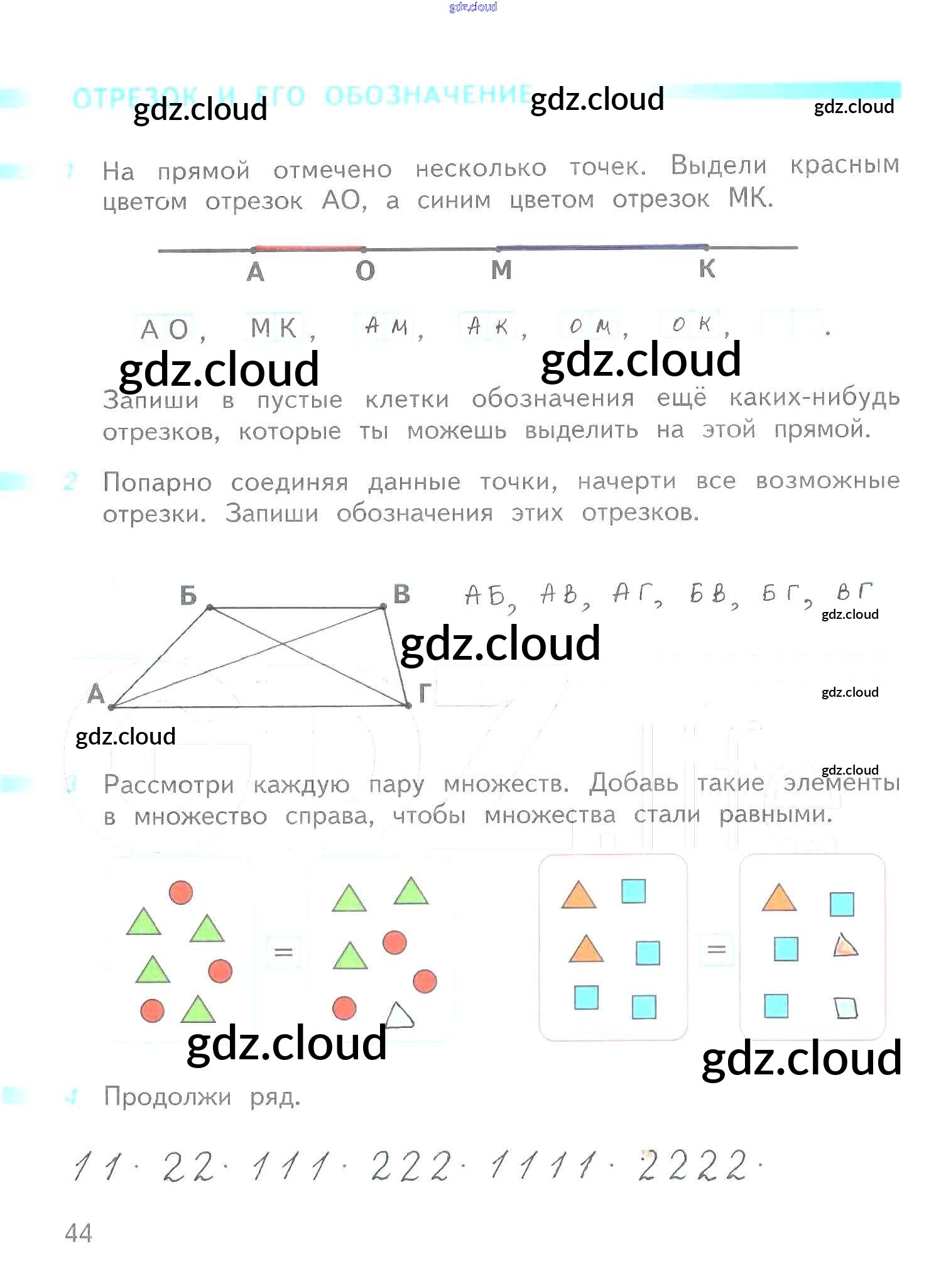 Ответ на задание 44 Рабочая тетрадь Математика за 1 (первый) класс Дорофеев, Миракова, Бука Перспектива 2016 Часть 1, 2