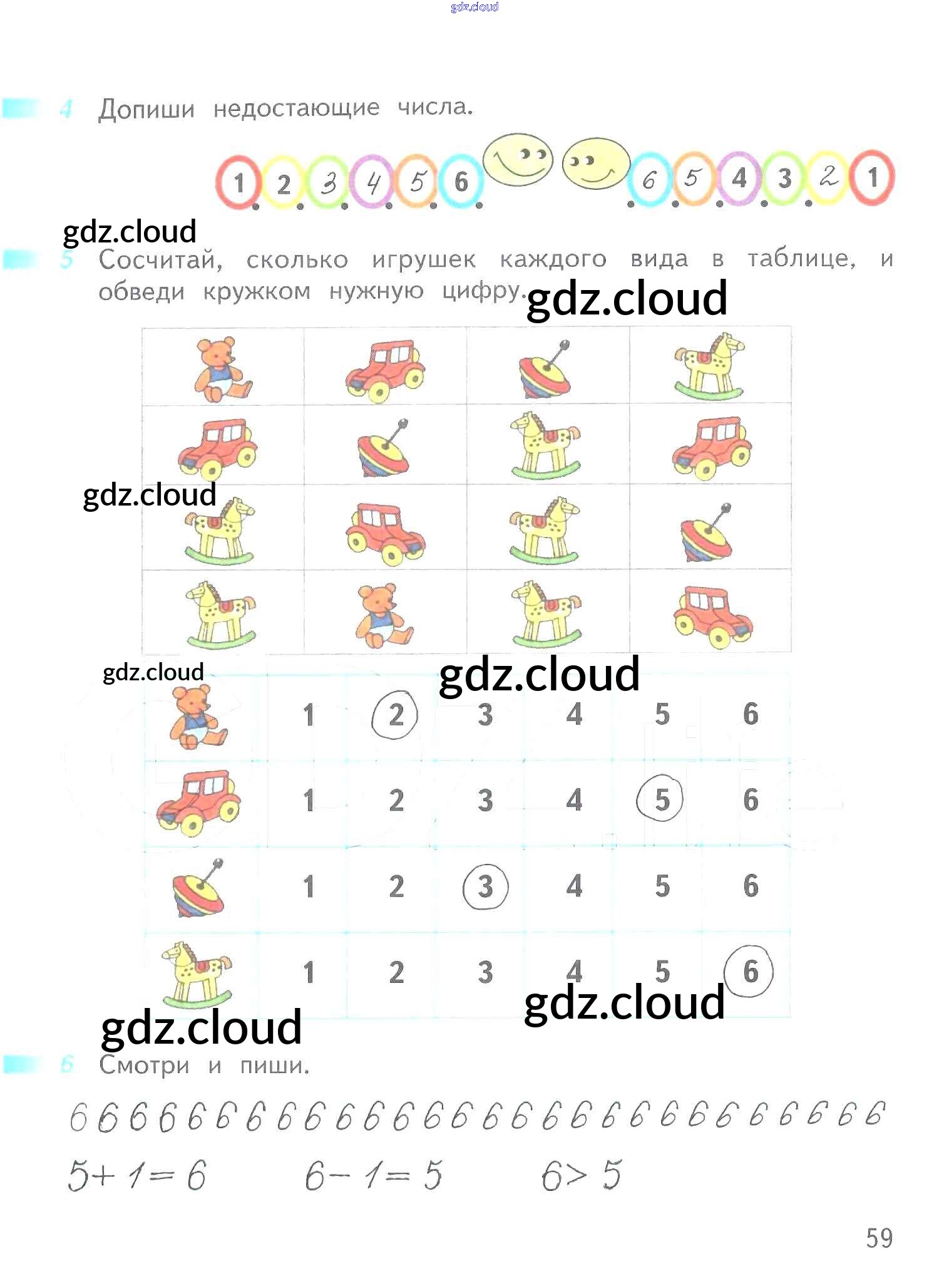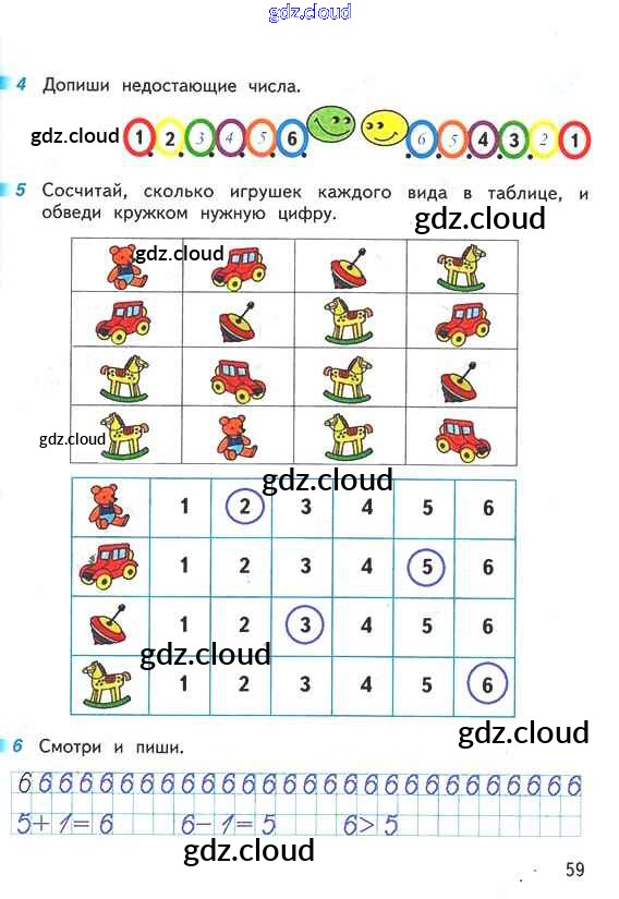 Ответ на задание 59 Рабочая тетрадь Математика за 1 (первый) класс Дорофеев, Миракова, Бука Перспектива 2016 Часть 1, 2