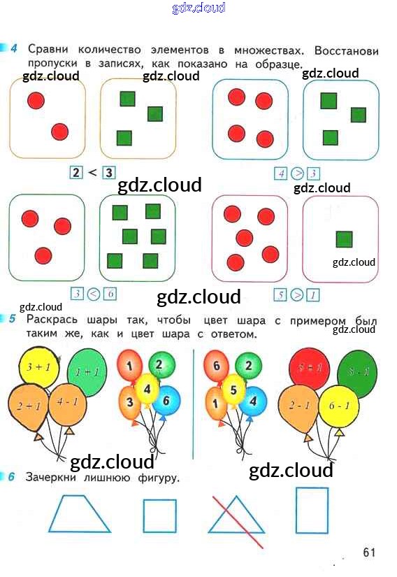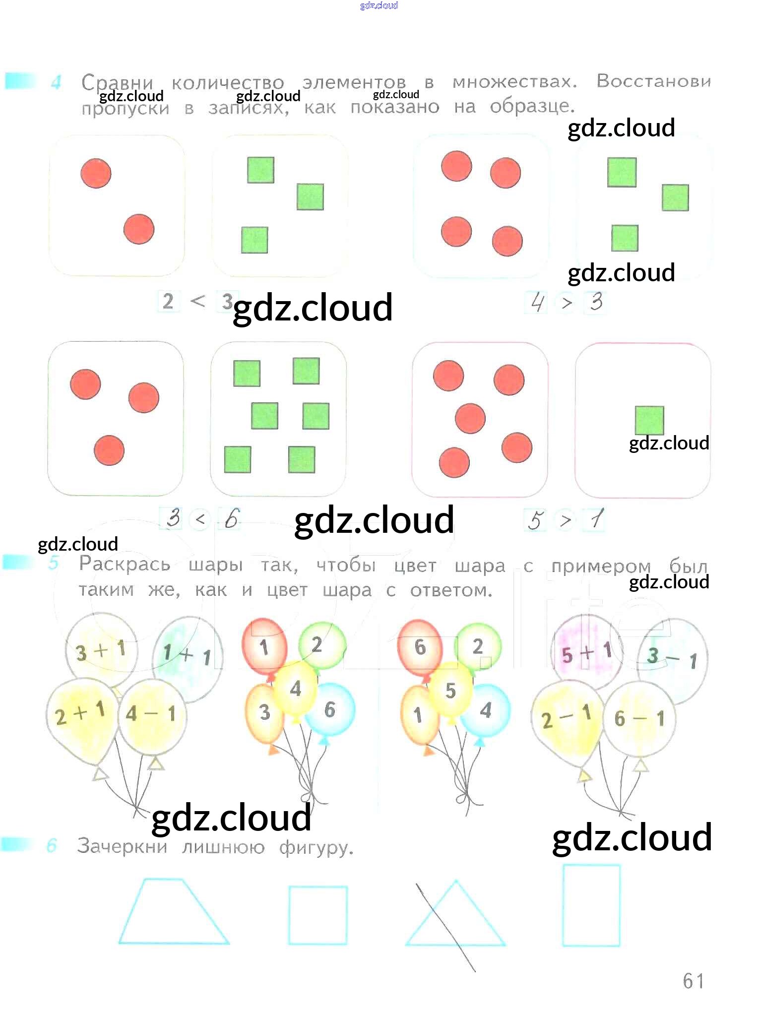 Ответ на задание 61 Рабочая тетрадь Математика за 1 (первый) класс Дорофеев, Миракова, Бука Перспектива 2016 Часть 1, 2