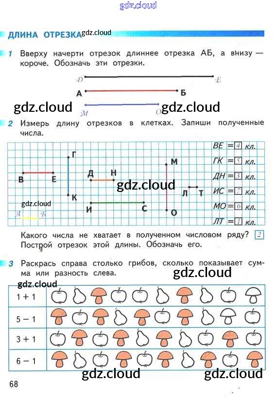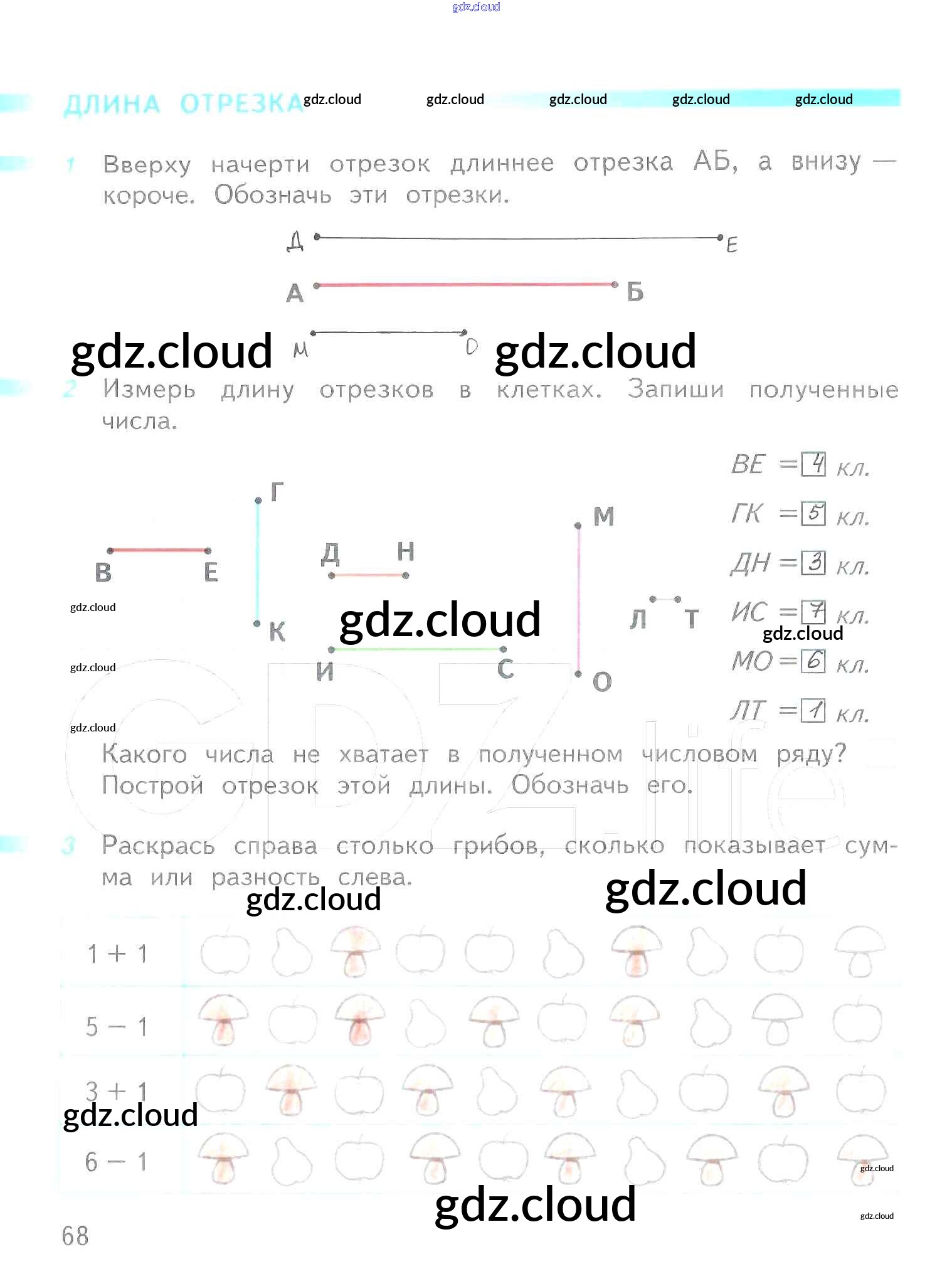 Ответ на задание 68 Рабочая тетрадь Математика за 1 (первый) класс Дорофеев, Миракова, Бука Перспектива 2016 Часть 1, 2
