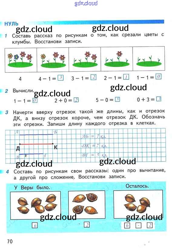 Ответ на задание 70 Рабочая тетрадь Математика за 1 (первый) класс Дорофеев, Миракова, Бука Перспектива 2016 Часть 1, 2