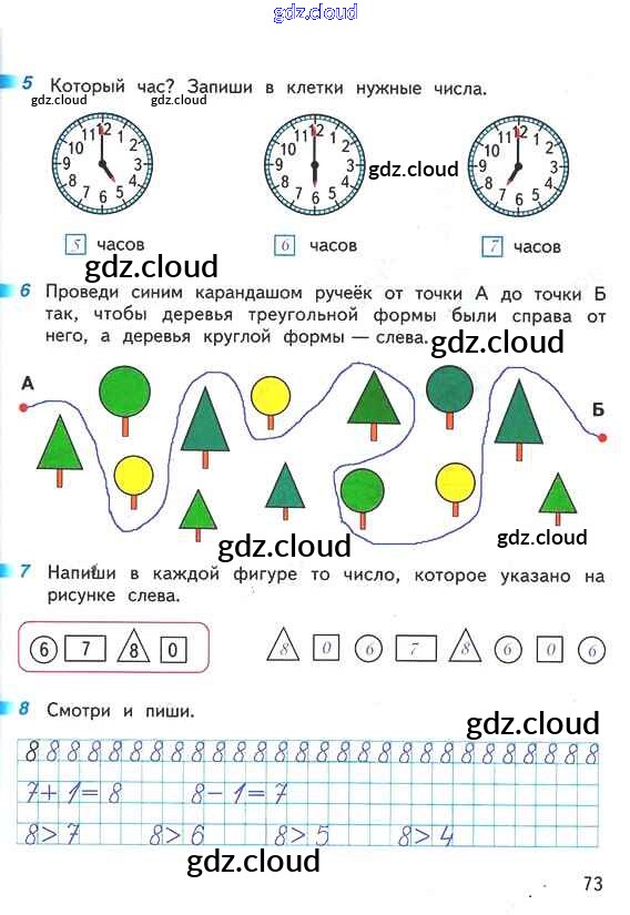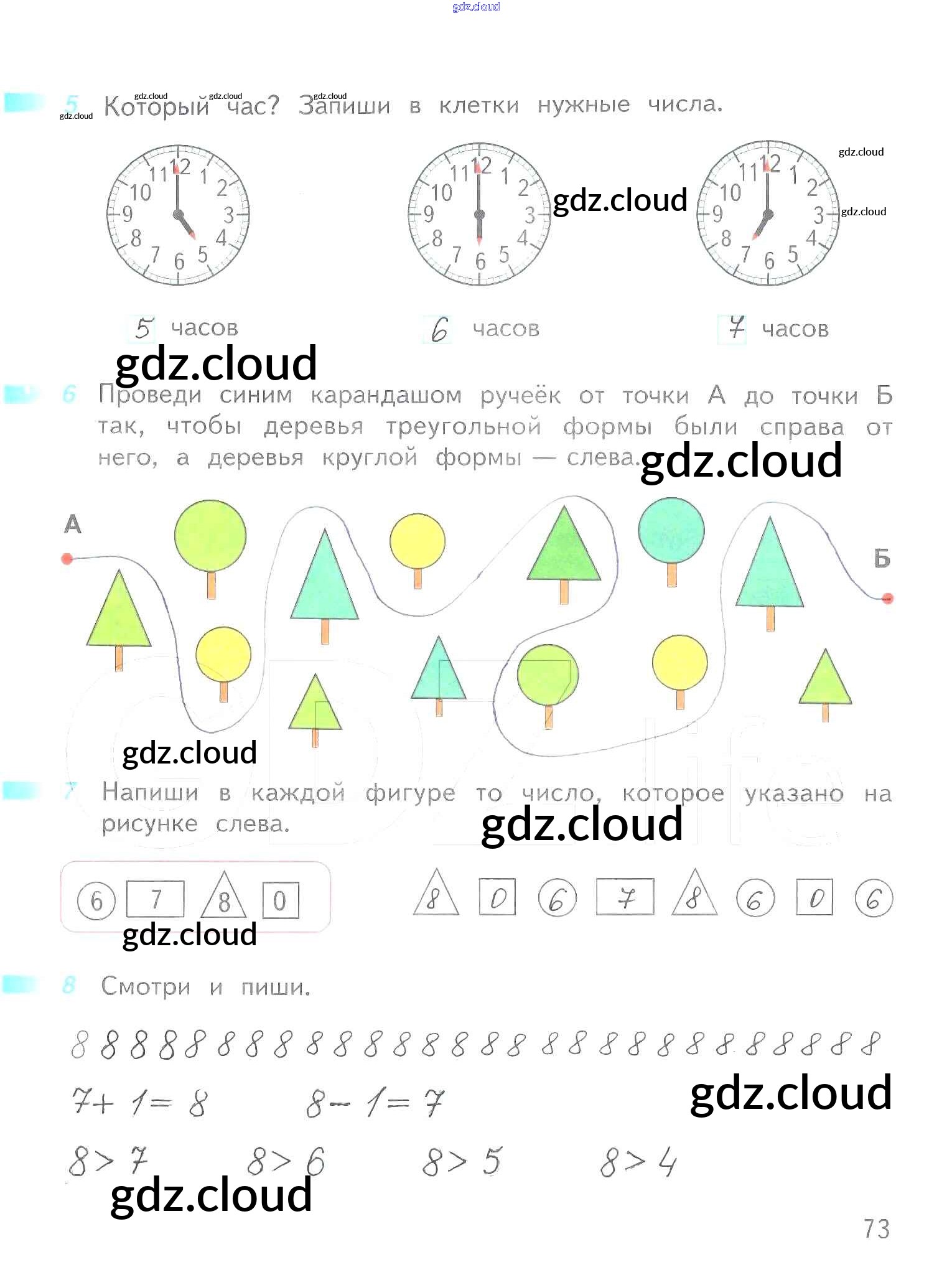 Ответ на задание 73 Рабочая тетрадь Математика за 1 (первый) класс Дорофеев, Миракова, Бука Перспектива 2016 Часть 1, 2