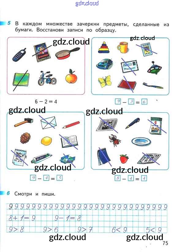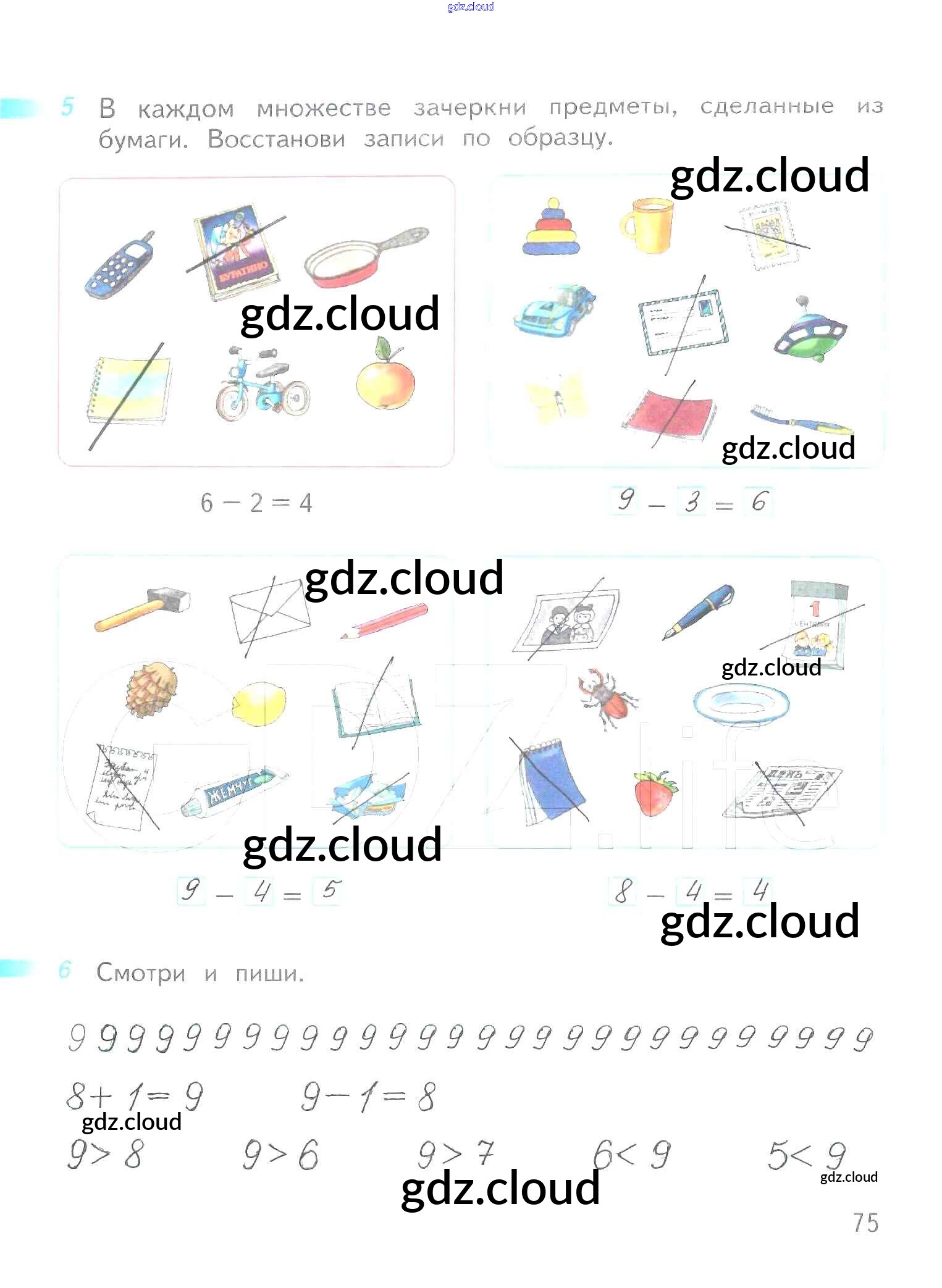 Ответ на задание 75 Рабочая тетрадь Математика за 1 (первый) класс Дорофеев, Миракова, Бука Перспектива 2016 Часть 1, 2