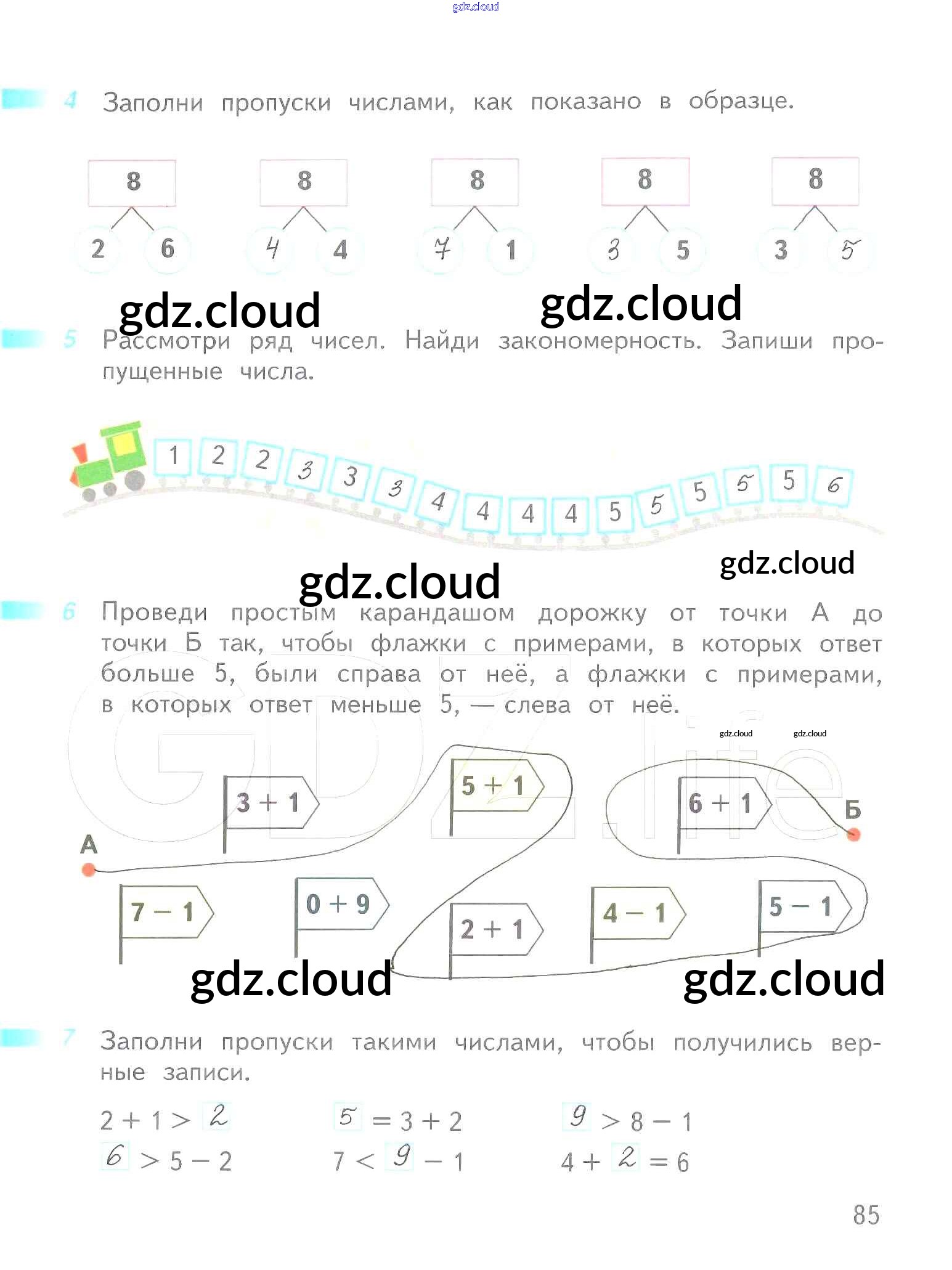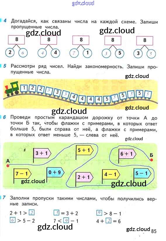 Ответ на задание 85 Рабочая тетрадь Математика за 1 (первый) класс Дорофеев, Миракова, Бука Перспектива 2016 Часть 1, 2