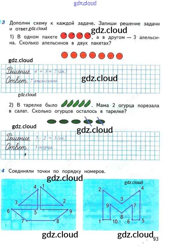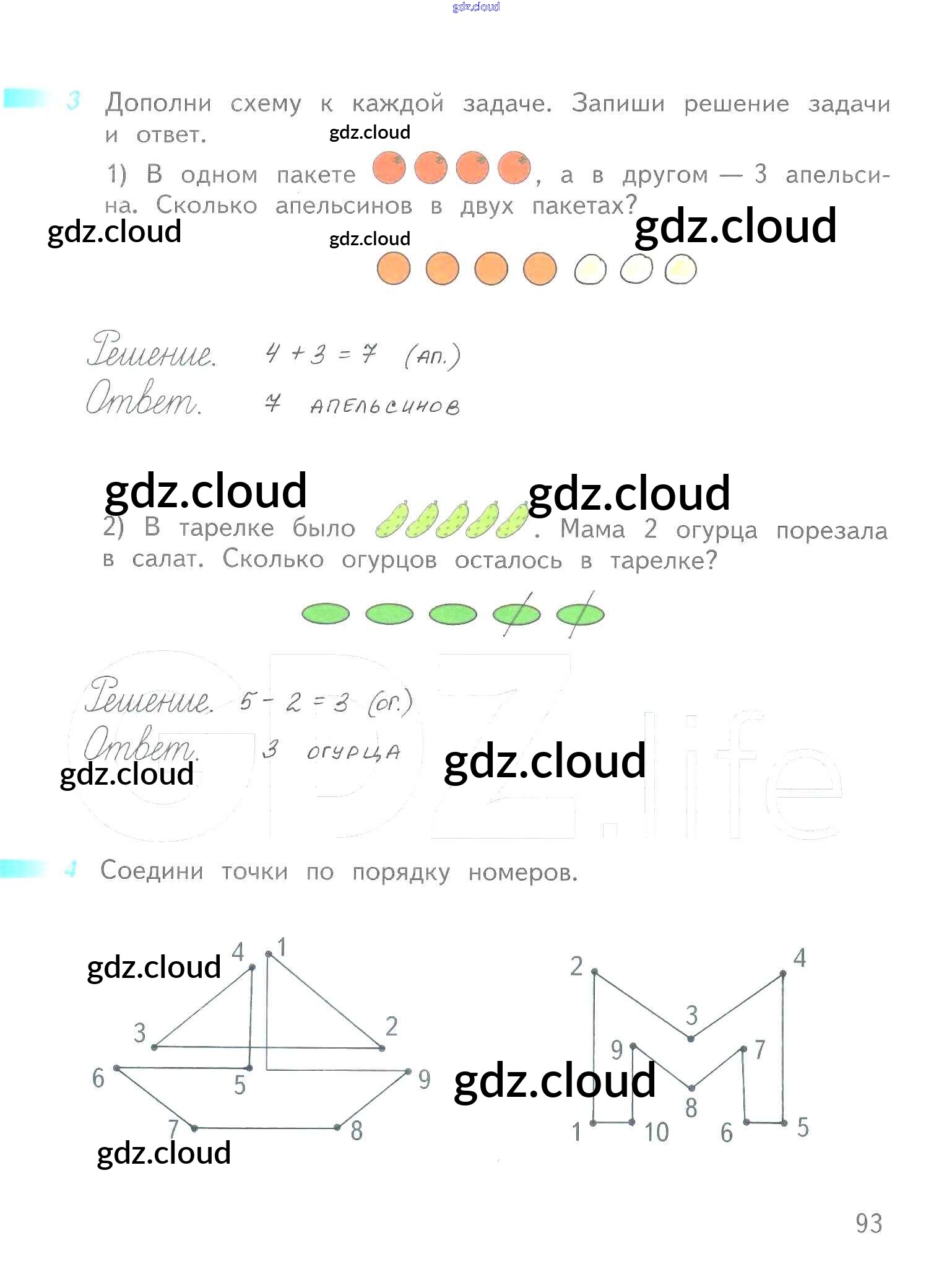 Ответ на задание 93 Рабочая тетрадь Математика за 1 (первый) класс Дорофеев, Миракова, Бука Перспектива 2016 Часть 1, 2