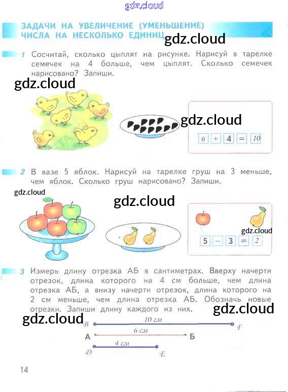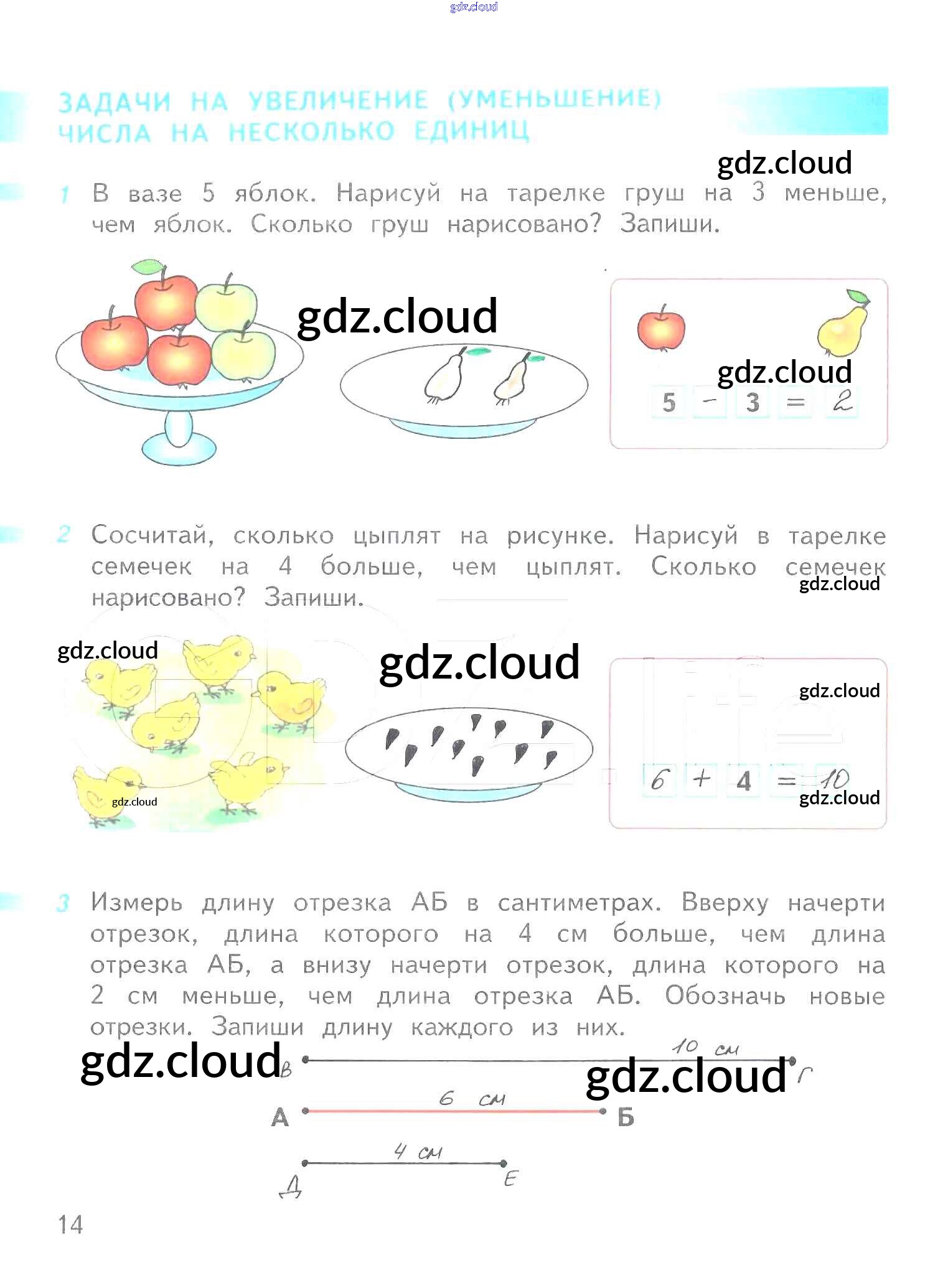 Ответ на задание 14 Рабочая тетрадь Математика за 1 (первый) класс Дорофеев, Миракова, Бука Перспектива 2016 Часть 1, 2