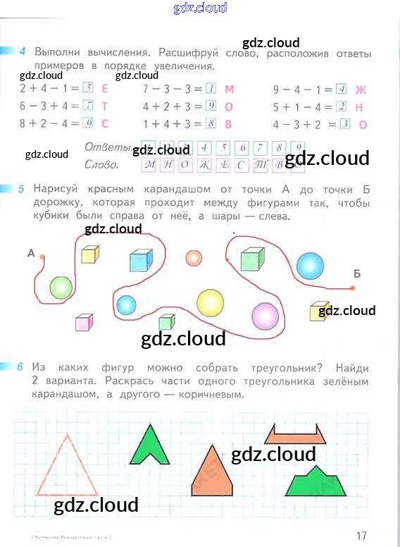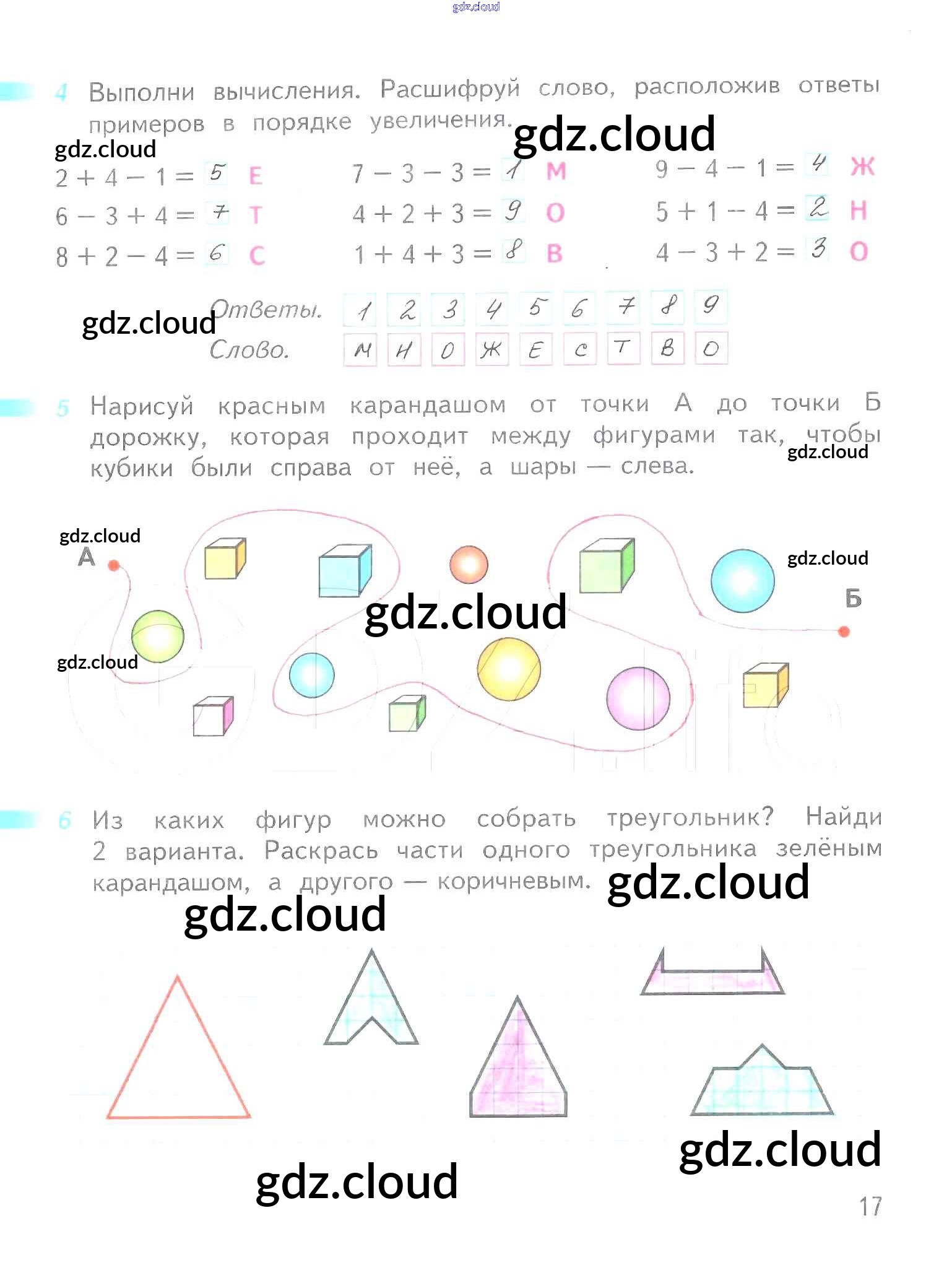 Ответ на задание 17 Рабочая тетрадь Математика за 1 (первый) класс Дорофеев, Миракова, Бука Перспектива 2016 Часть 1, 2