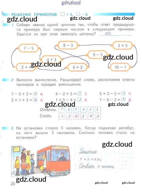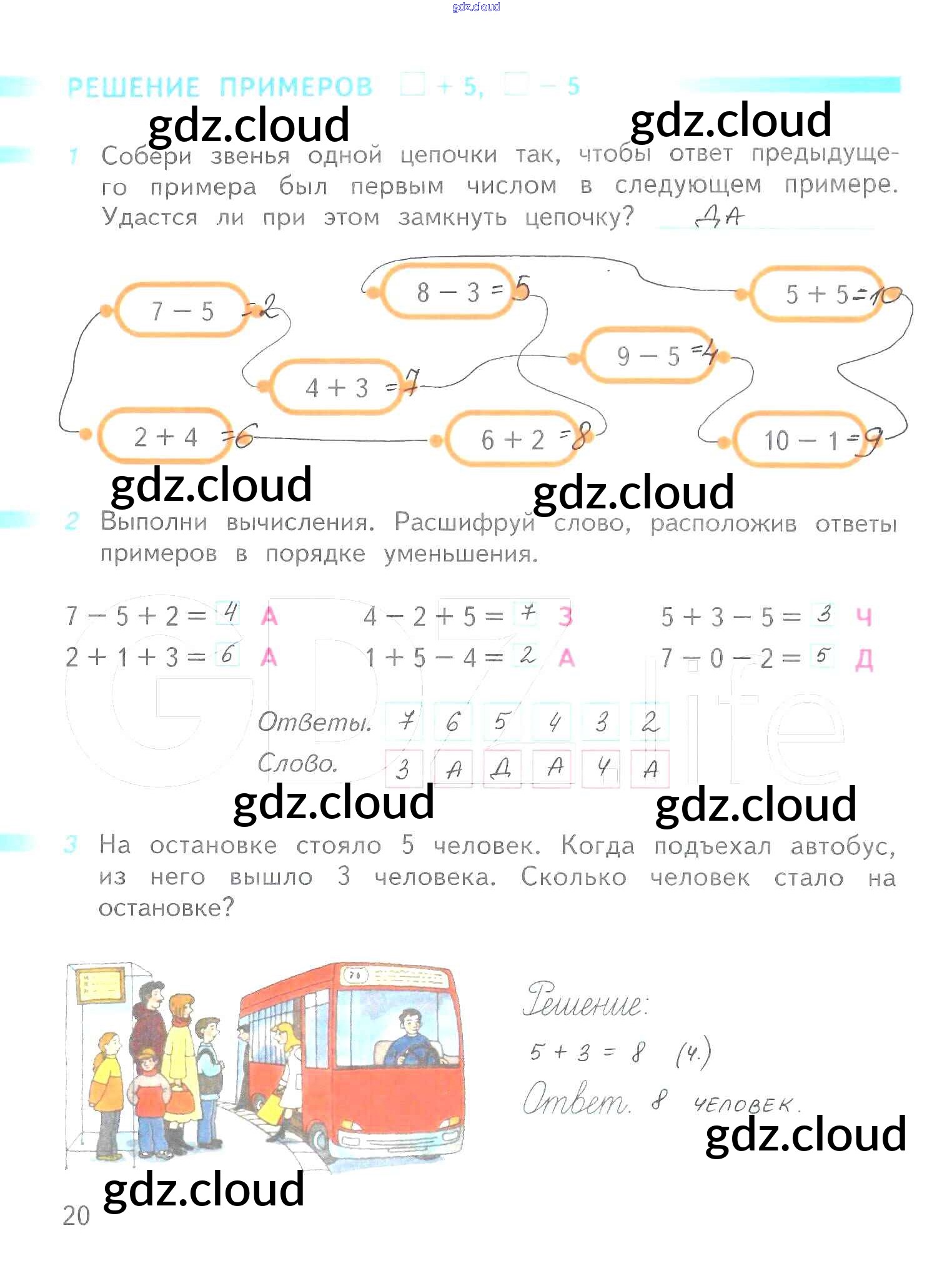 Ответ на задание 20 Рабочая тетрадь Математика за 1 (первый) класс Дорофеев, Миракова, Бука Перспектива 2016 Часть 1, 2