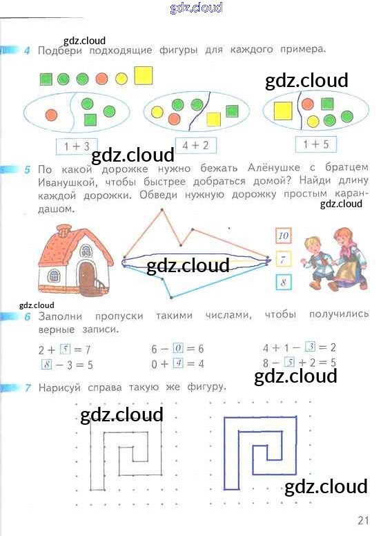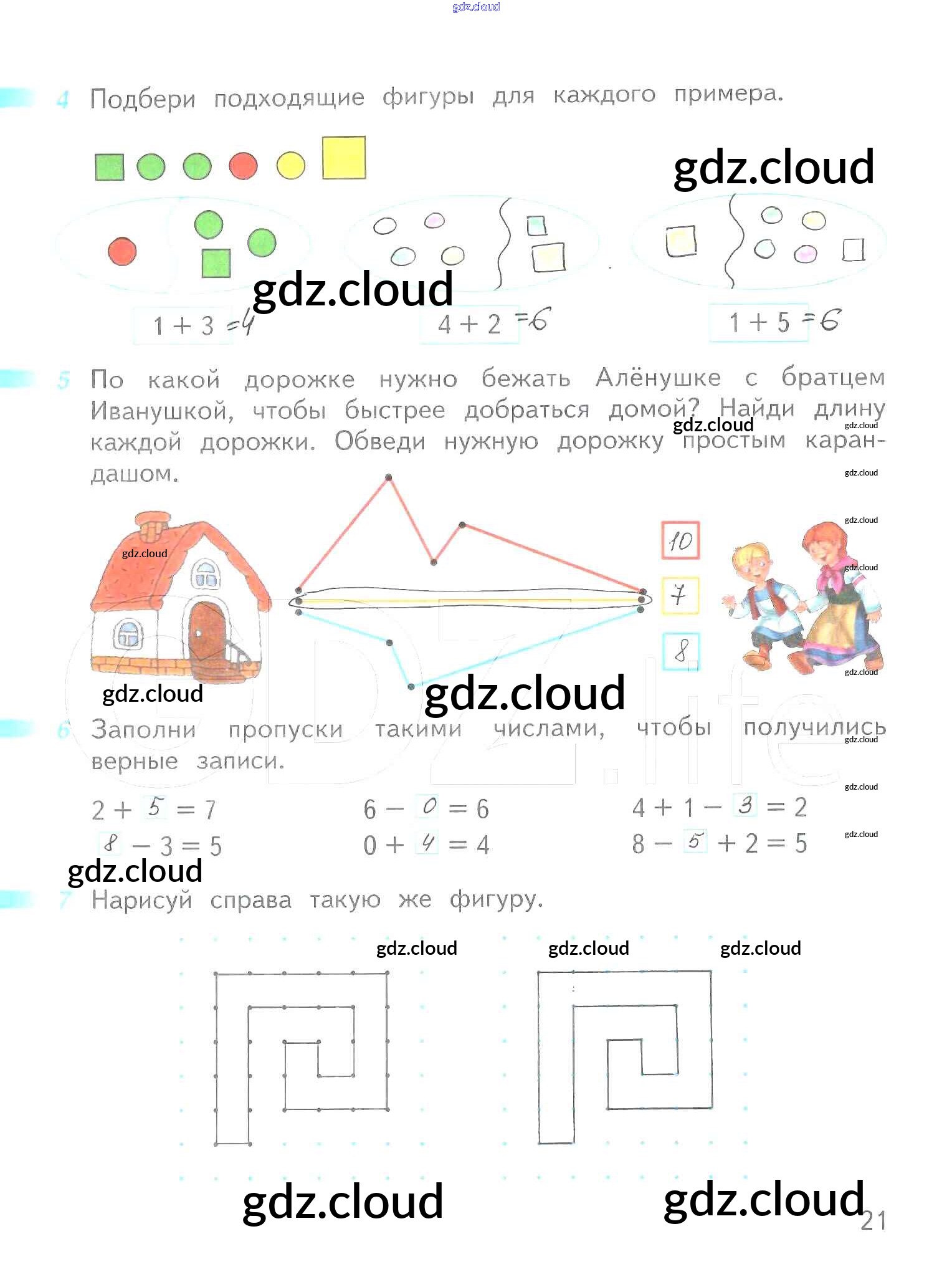 Ответ на задание 21 Рабочая тетрадь Математика за 1 (первый) класс Дорофеев, Миракова, Бука Перспектива 2016 Часть 1, 2