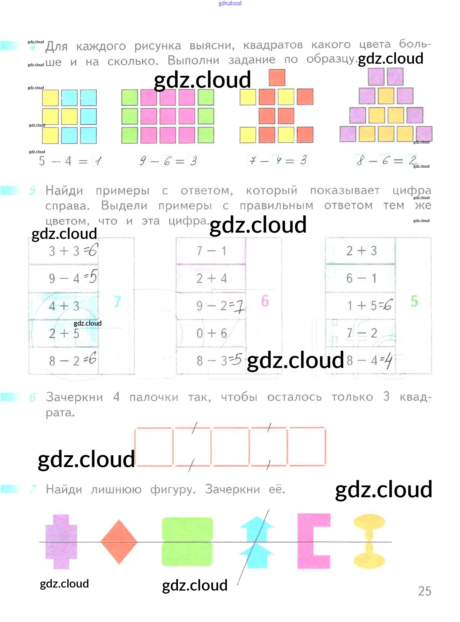 Ответ на задание 25 Рабочая тетрадь Математика за 1 (первый) класс Дорофеев, Миракова, Бука Перспектива 2016 Часть 1, 2