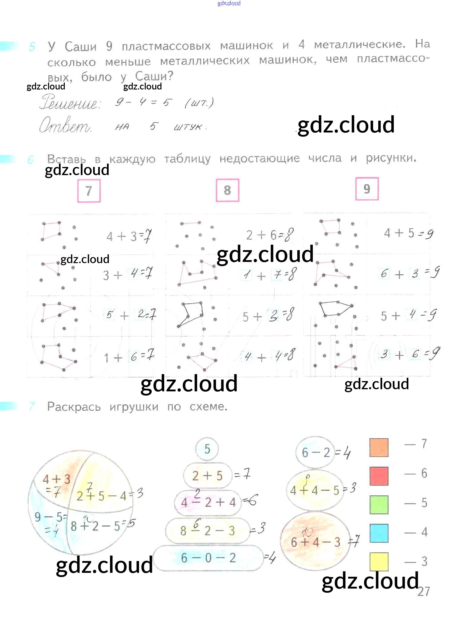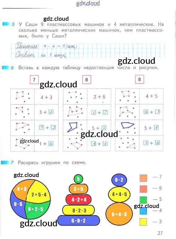 Ответ на задание 27 Рабочая тетрадь Математика за 1 (первый) класс Дорофеев, Миракова, Бука Перспектива 2016 Часть 1, 2