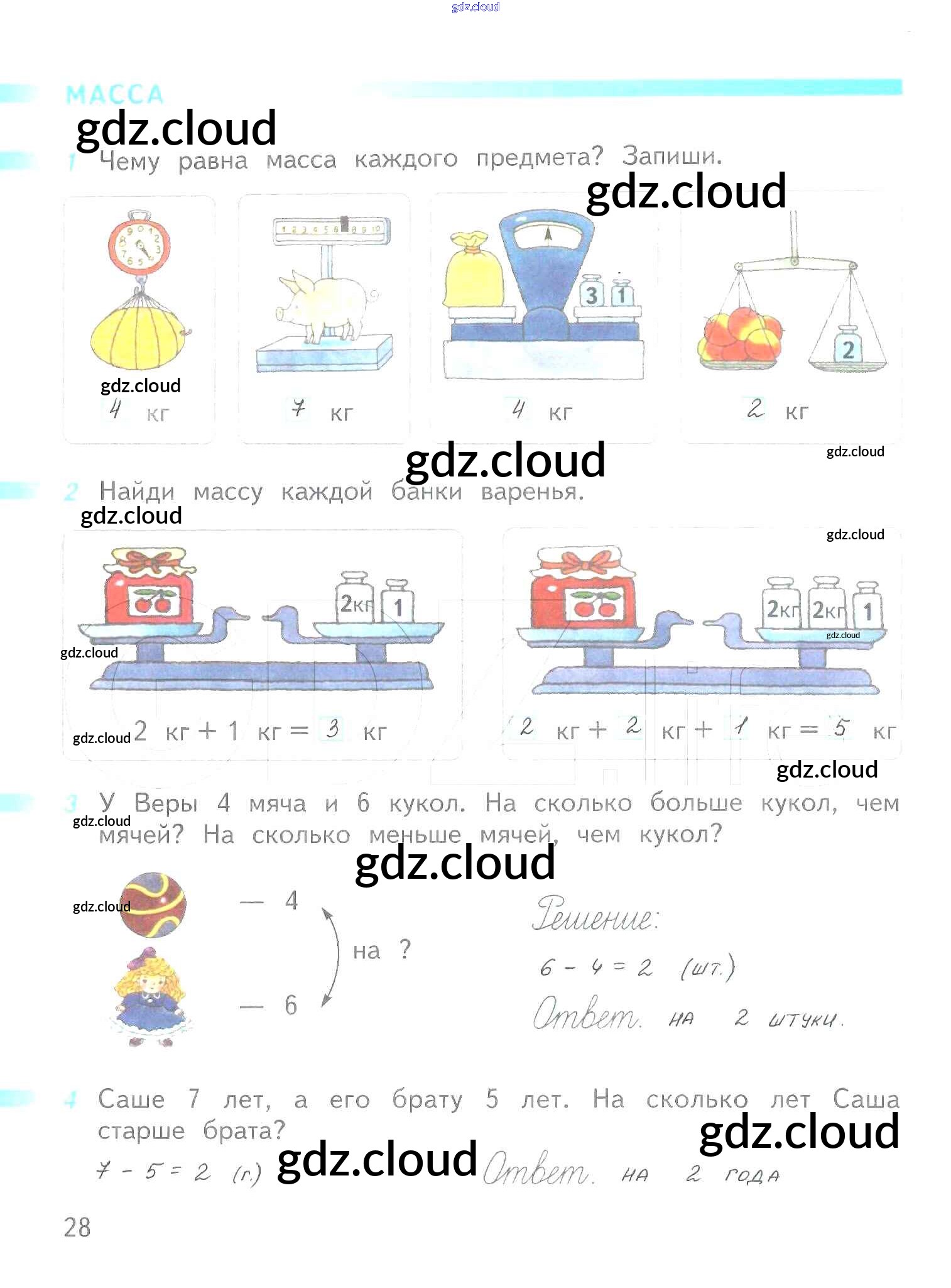 Ответ на задание 28 Рабочая тетрадь Математика за 1 (первый) класс Дорофеев, Миракова, Бука Перспектива 2016 Часть 1, 2