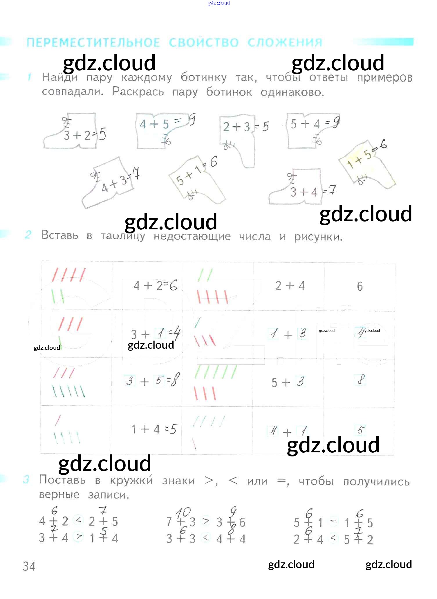 Ответ на задание 34 Рабочая тетрадь Математика за 1 (первый) класс Дорофеев, Миракова, Бука Перспектива 2016 Часть 1, 2