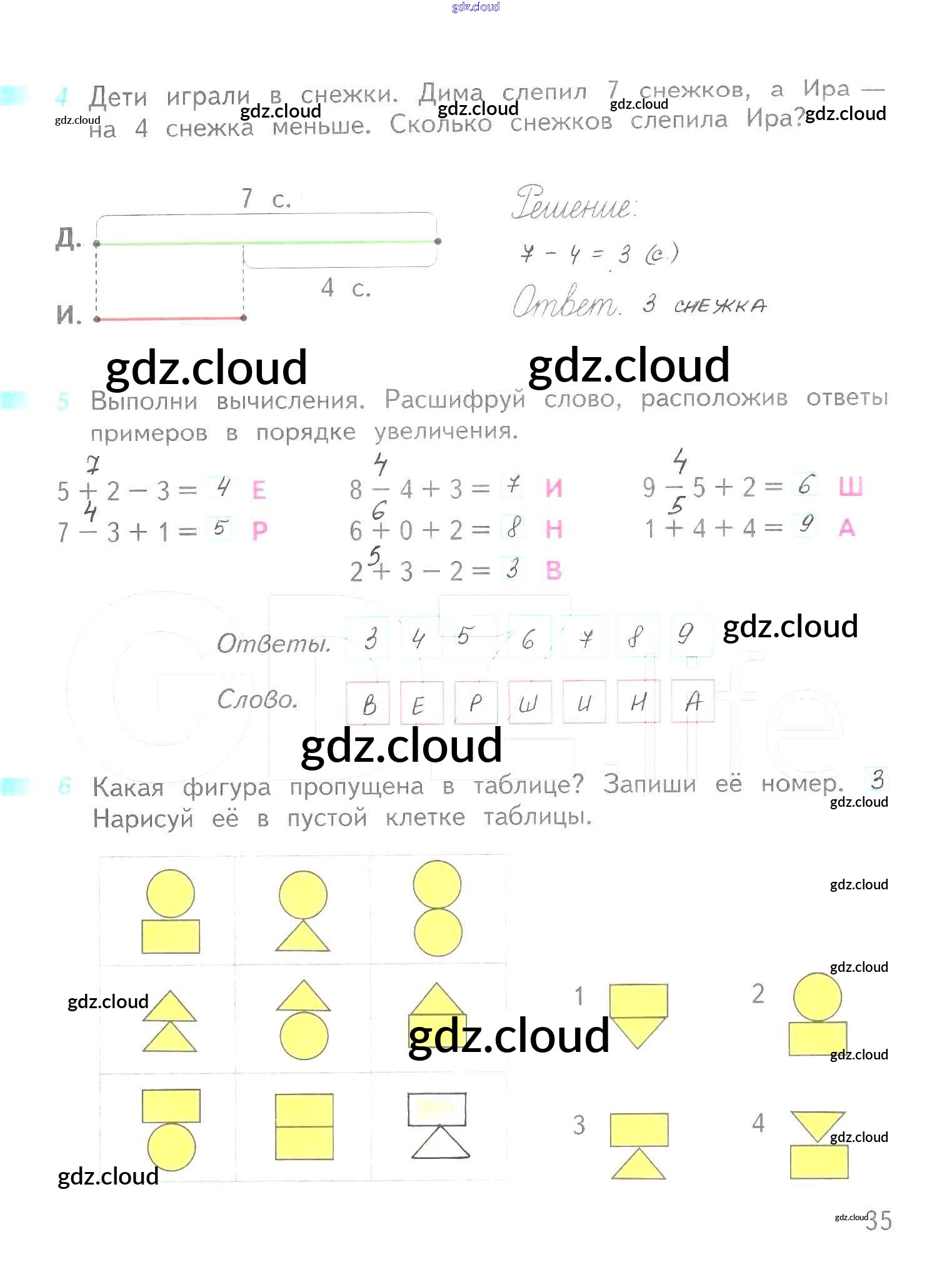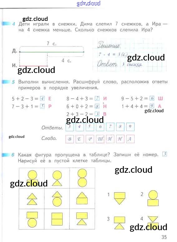Ответ на задание 35 Рабочая тетрадь Математика за 1 (первый) класс Дорофеев, Миракова, Бука Перспектива 2016 Часть 1, 2