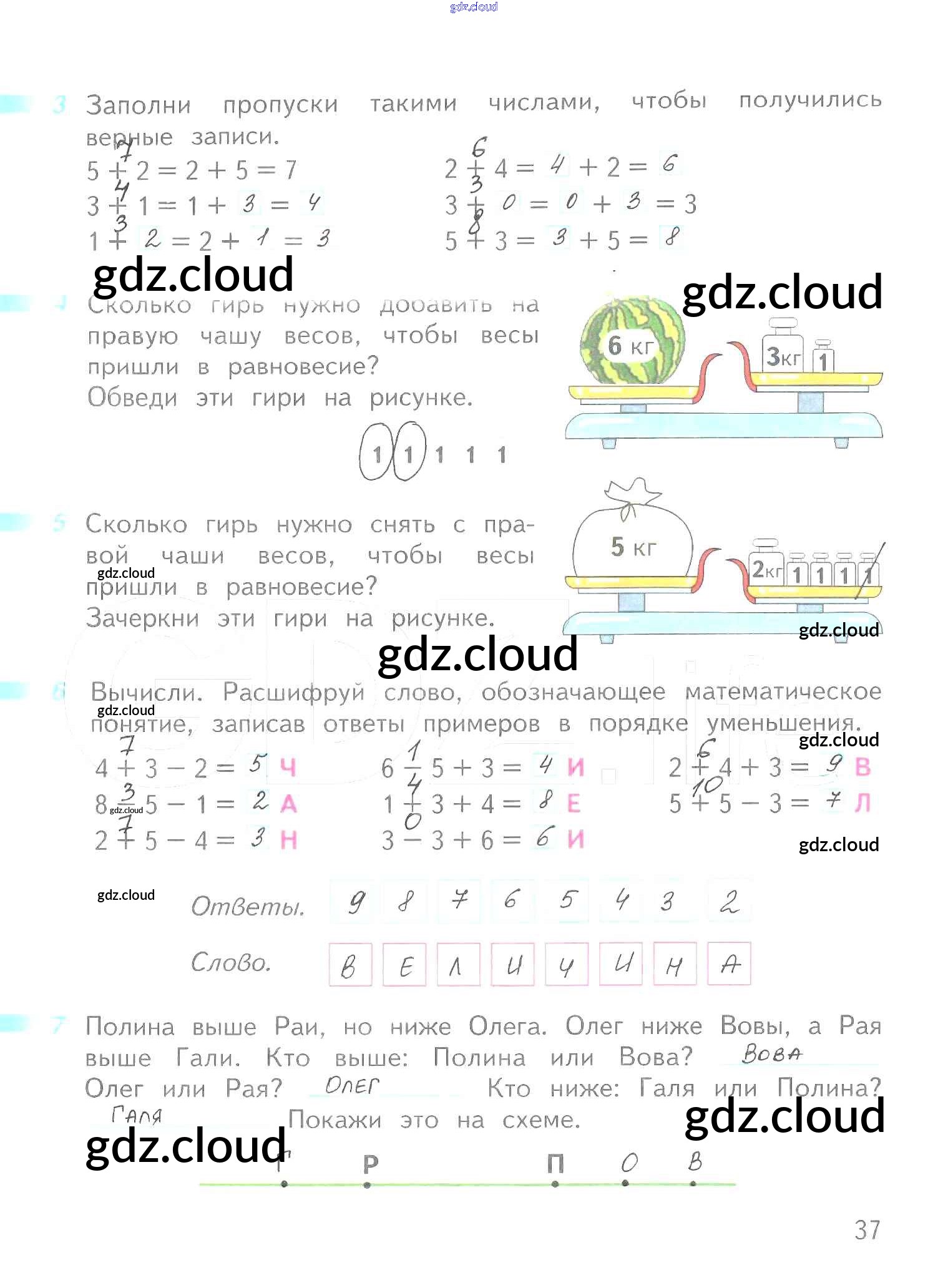 Ответ на задание 37 Рабочая тетрадь Математика за 1 (первый) класс Дорофеев, Миракова, Бука Перспектива 2016 Часть 1, 2