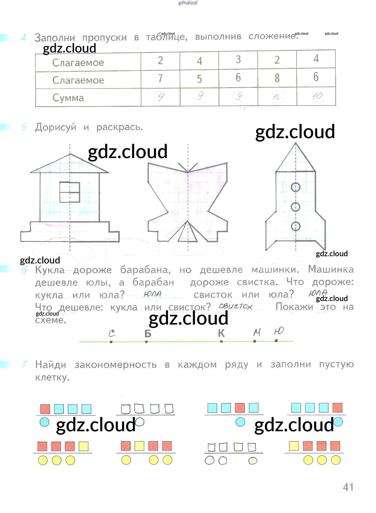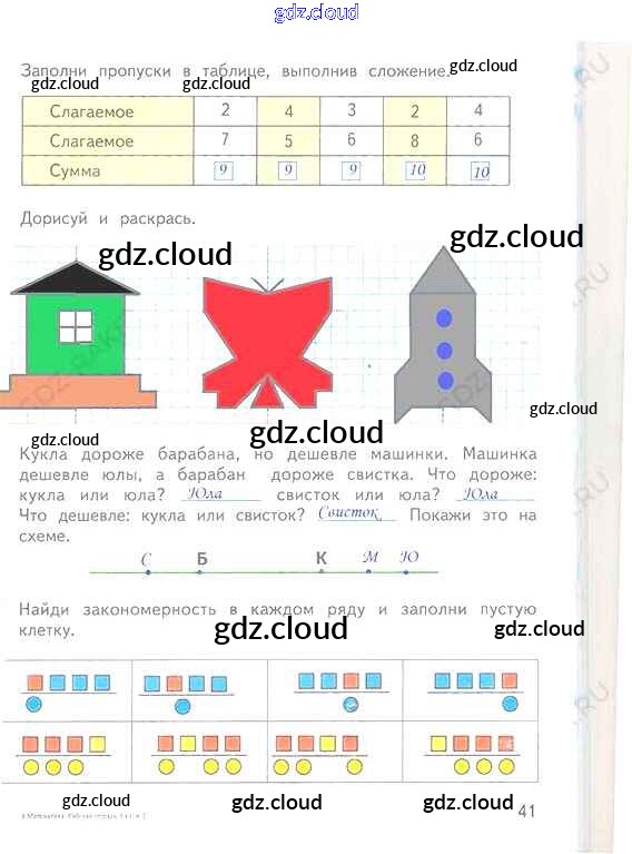 Ответ на задание 41 Рабочая тетрадь Математика за 1 (первый) класс Дорофеев, Миракова, Бука Перспектива 2016 Часть 1, 2