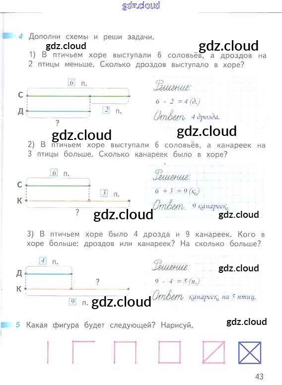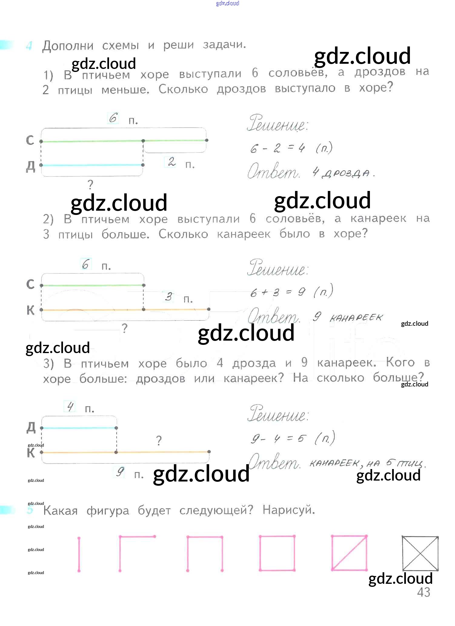 Ответ на задание 43 Рабочая тетрадь Математика за 1 (первый) класс Дорофеев, Миракова, Бука Перспектива 2016 Часть 1, 2
