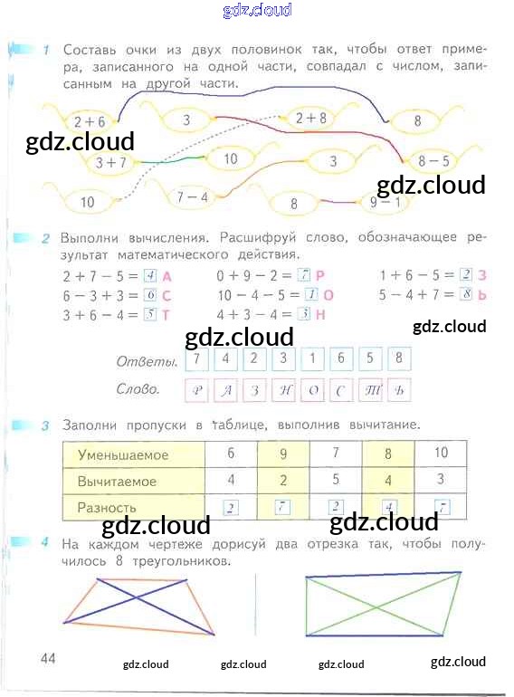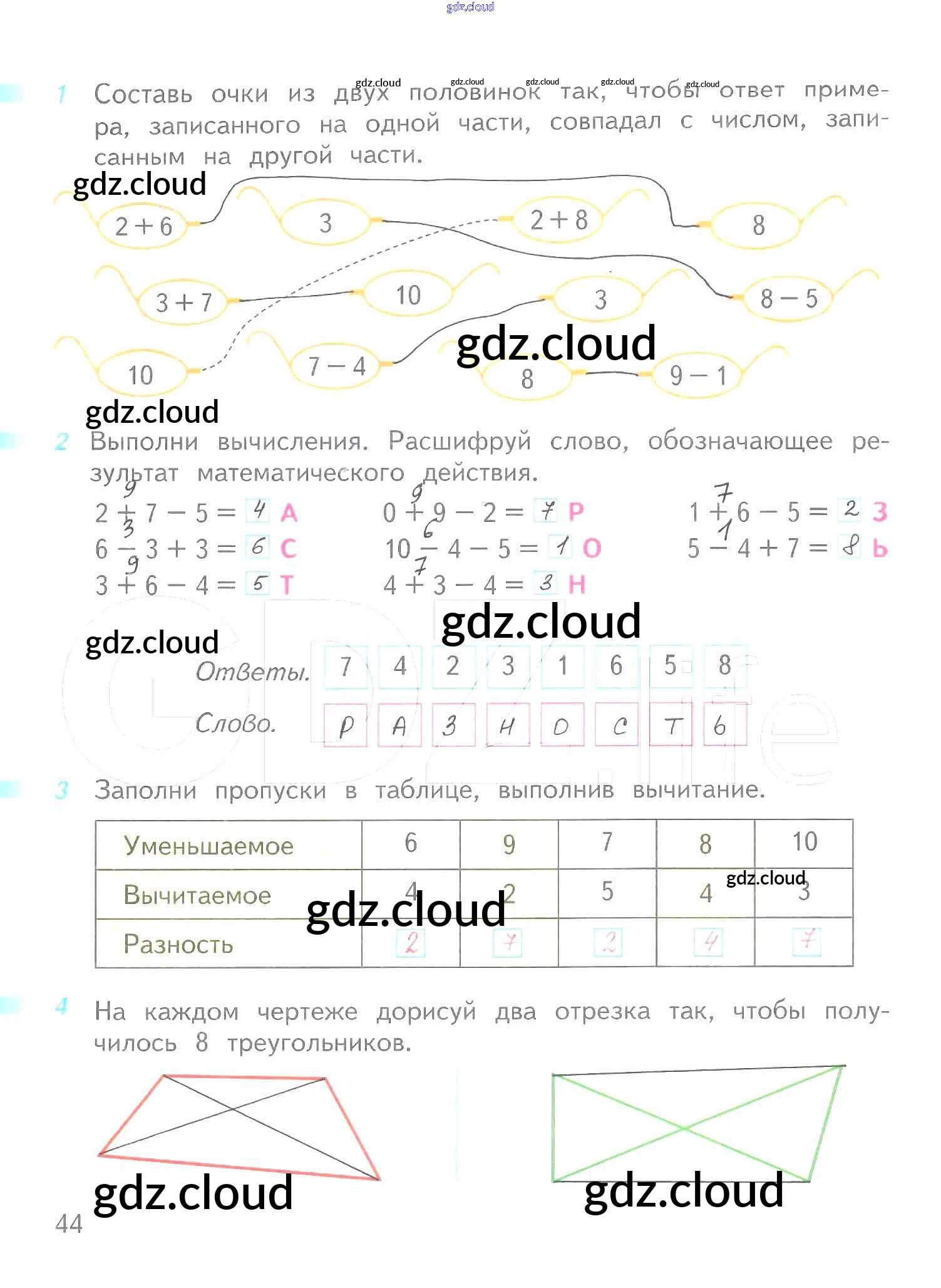 Ответ на задание 44 Рабочая тетрадь Математика за 1 (первый) класс Дорофеев, Миракова, Бука Перспектива 2016 Часть 1, 2