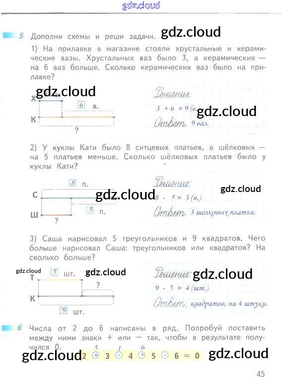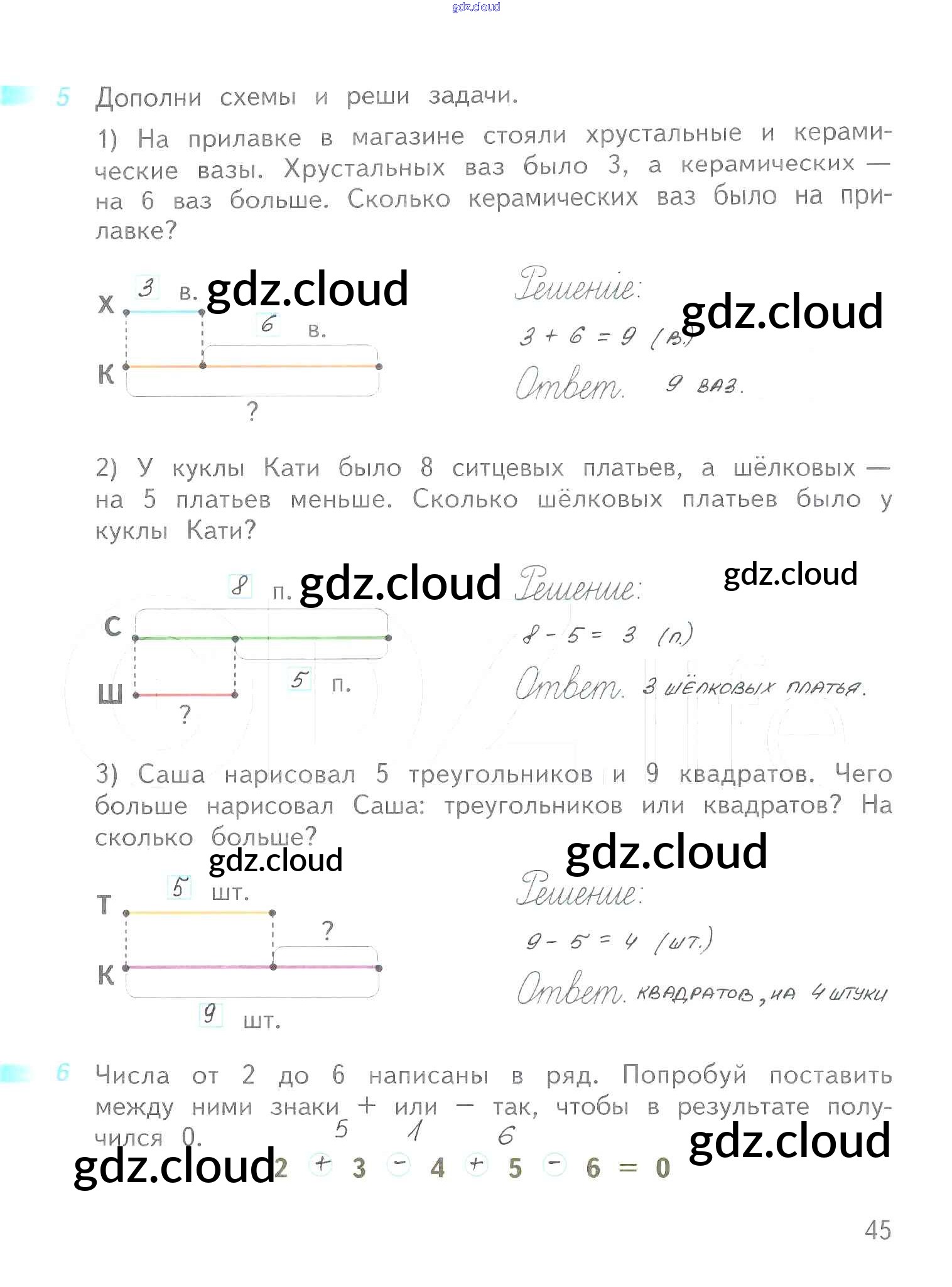 Ответ на задание 45 Рабочая тетрадь Математика за 1 (первый) класс Дорофеев, Миракова, Бука Перспектива 2016 Часть 1, 2