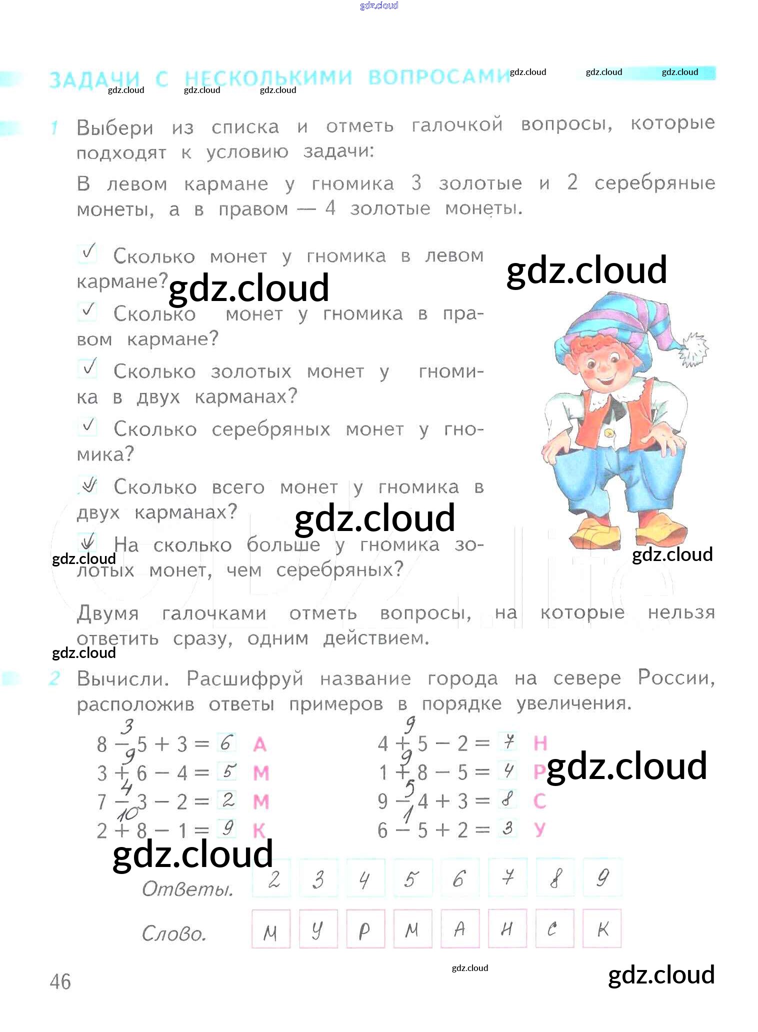 Ответ на задание 46 Рабочая тетрадь Математика за 1 (первый) класс Дорофеев, Миракова, Бука Перспектива 2016 Часть 1, 2