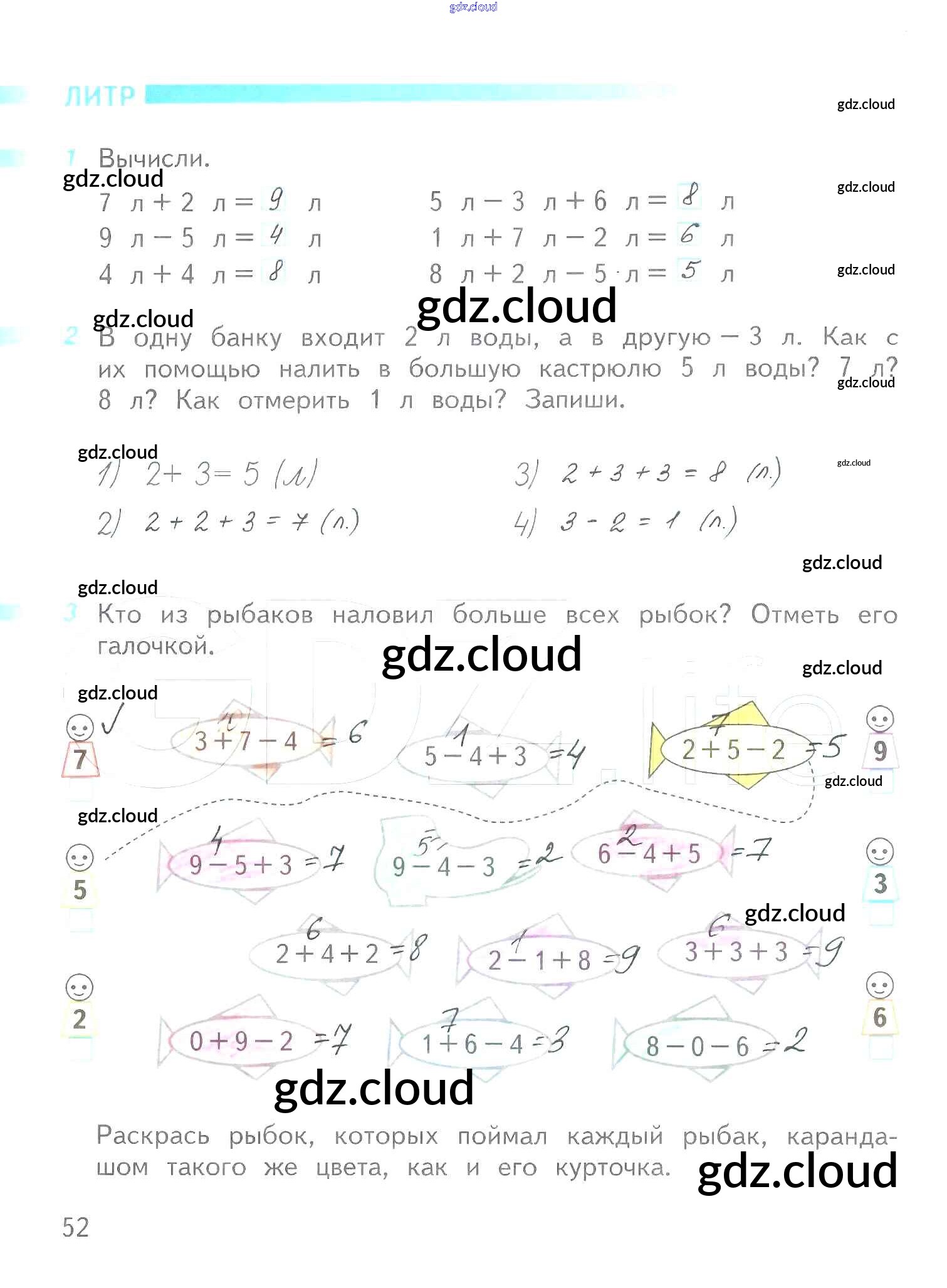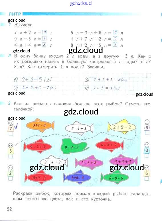 Ответ на задание 52 Рабочая тетрадь Математика за 1 (первый) класс Дорофеев, Миракова, Бука Перспектива 2016 Часть 1, 2