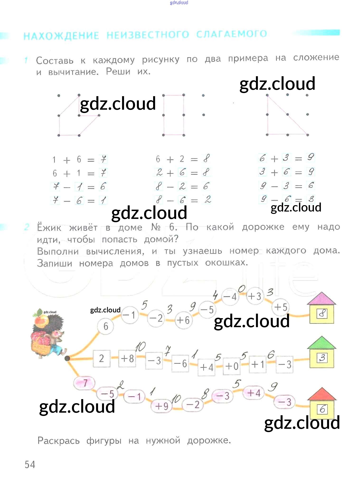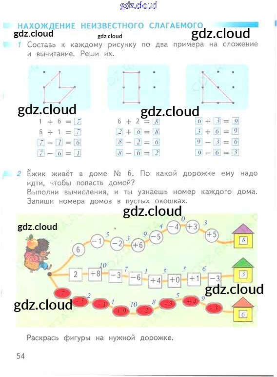 Ответ на задание 54 Рабочая тетрадь Математика за 1 (первый) класс Дорофеев, Миракова, Бука Перспектива 2016 Часть 1, 2