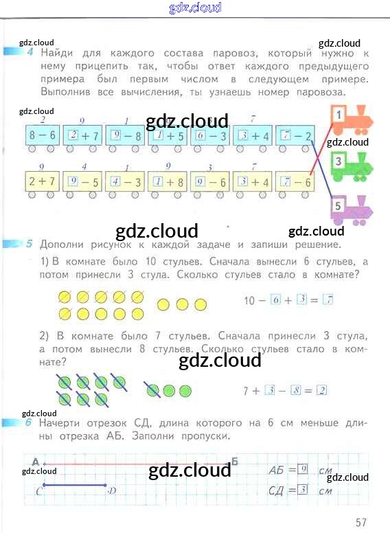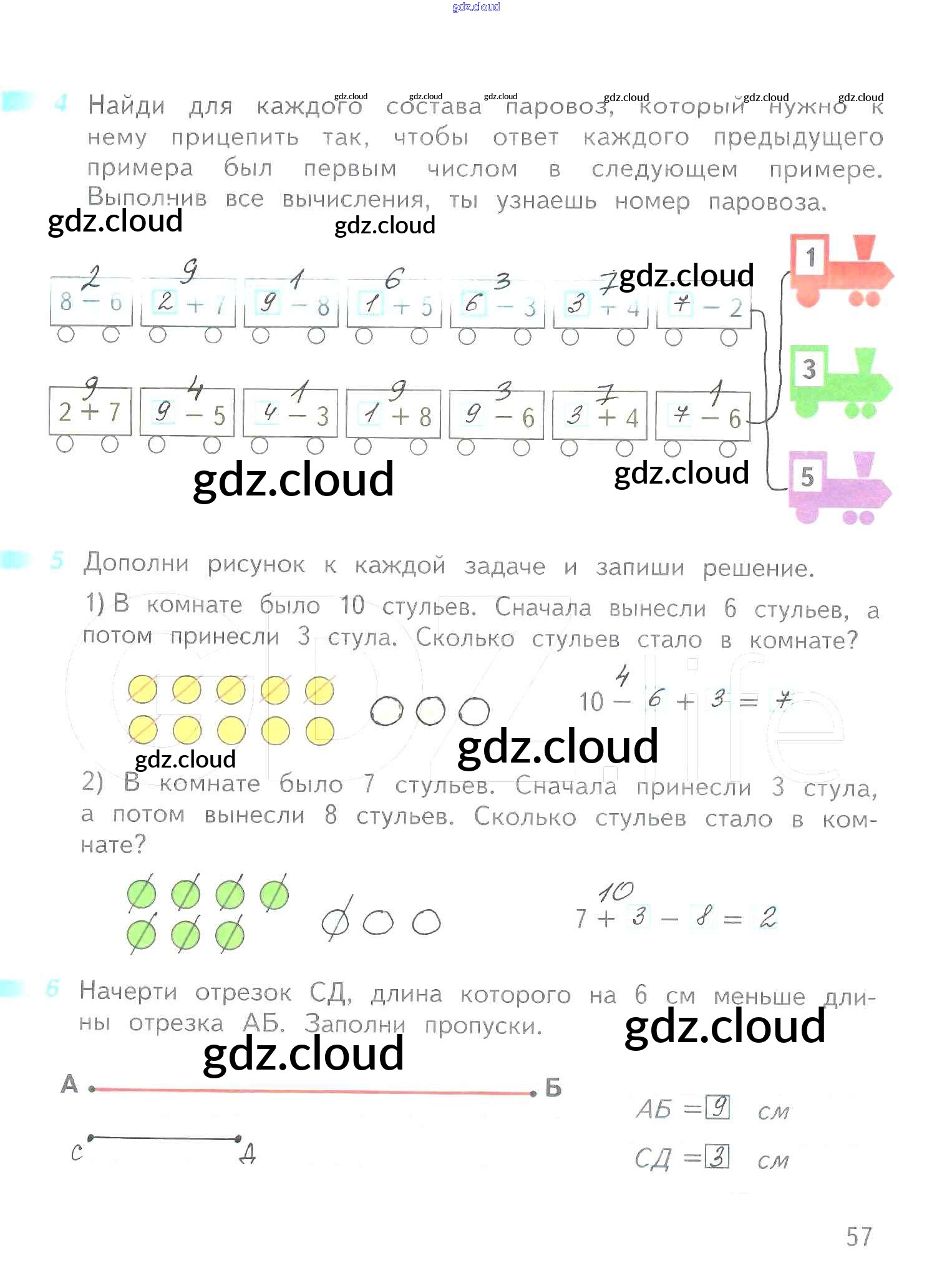 Ответ на задание 57 Рабочая тетрадь Математика за 1 (первый) класс Дорофеев, Миракова, Бука Перспектива 2016 Часть 1, 2