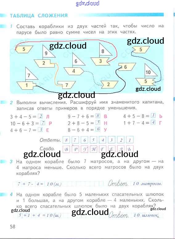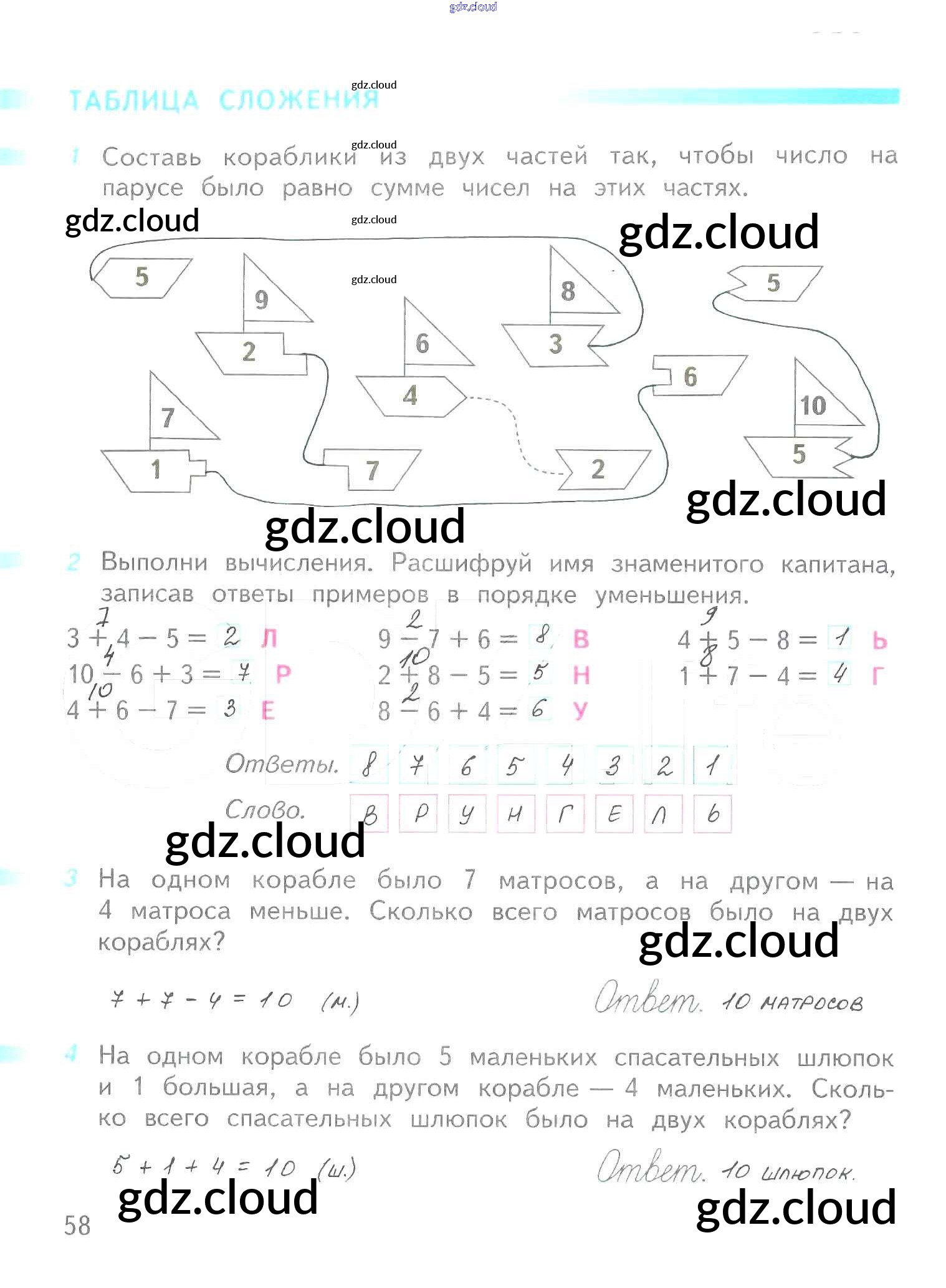 Ответ на задание 58 Рабочая тетрадь Математика за 1 (первый) класс Дорофеев, Миракова, Бука Перспектива 2016 Часть 1, 2