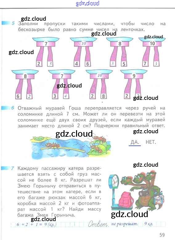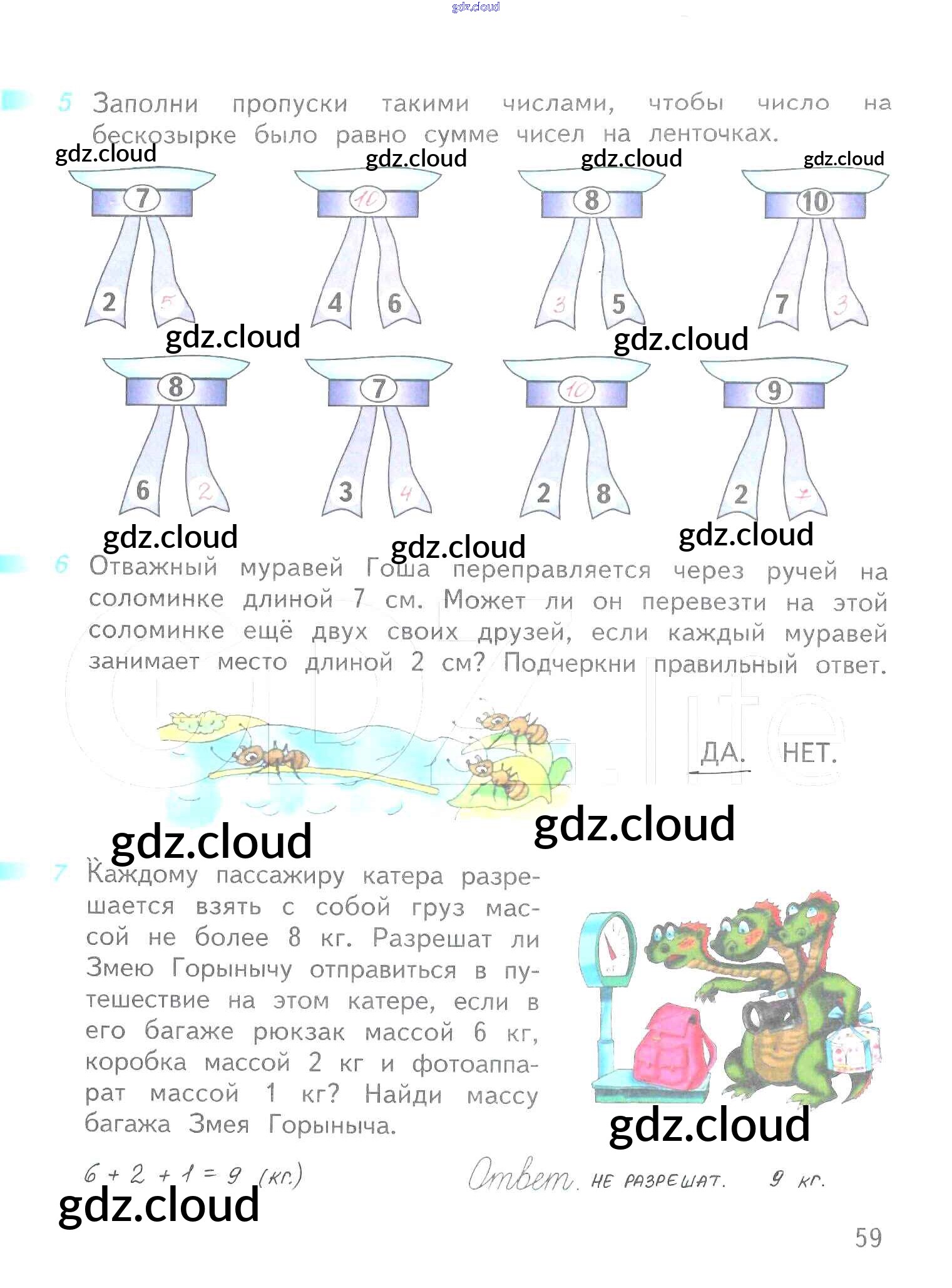 Ответ на задание 59 Рабочая тетрадь Математика за 1 (первый) класс Дорофеев, Миракова, Бука Перспектива 2016 Часть 1, 2