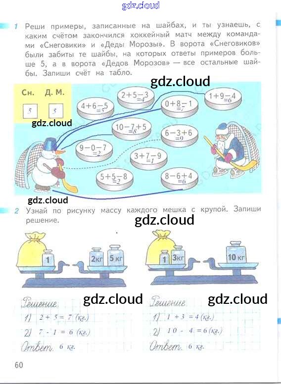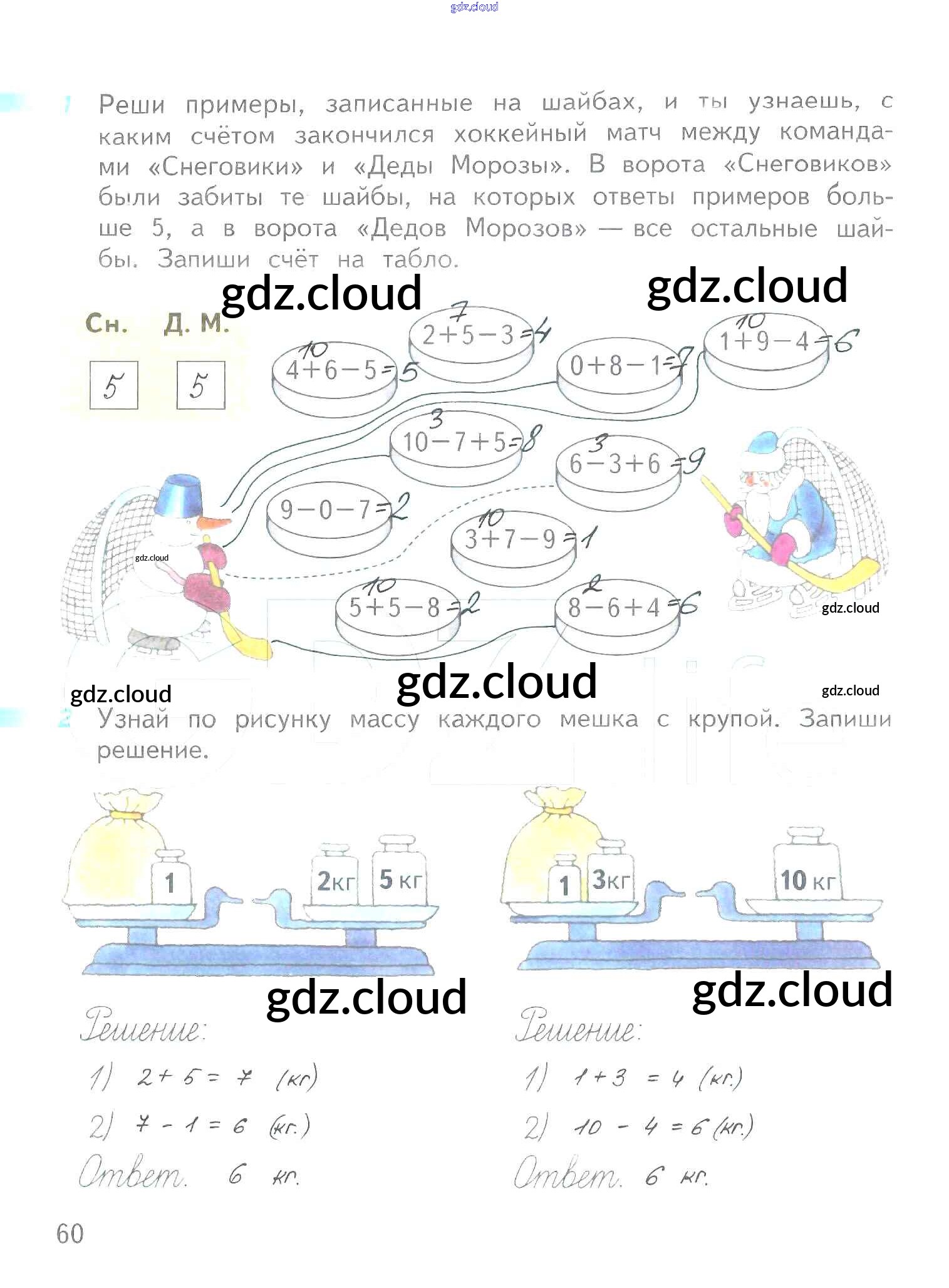 Ответ на задание 60 Рабочая тетрадь Математика за 1 (первый) класс Дорофеев, Миракова, Бука Перспектива 2016 Часть 1, 2