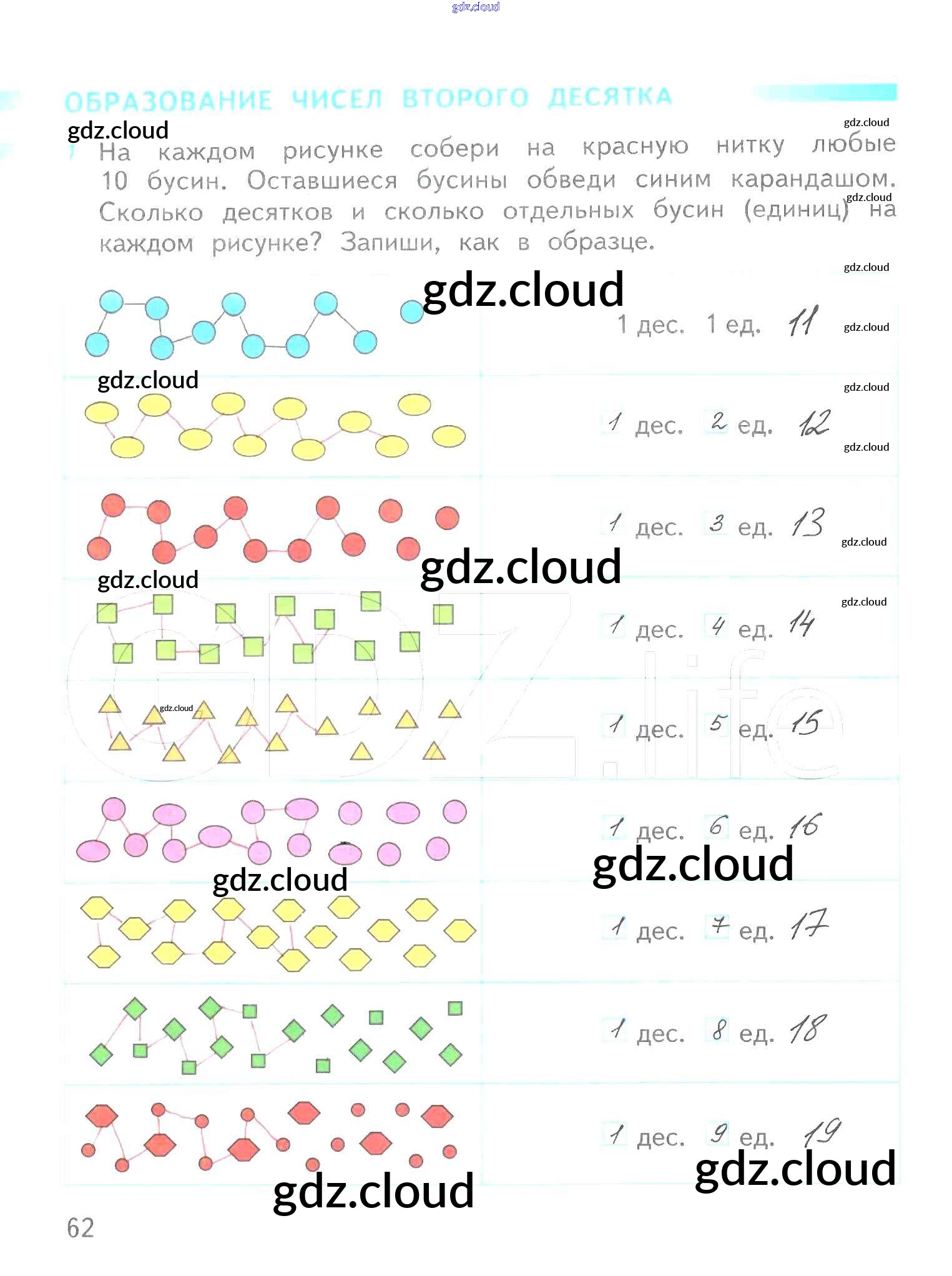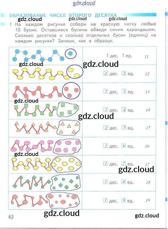 Ответ на задание 62 Рабочая тетрадь Математика за 1 (первый) класс Дорофеев, Миракова, Бука Перспектива 2016 Часть 1, 2