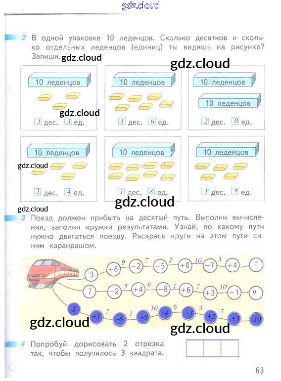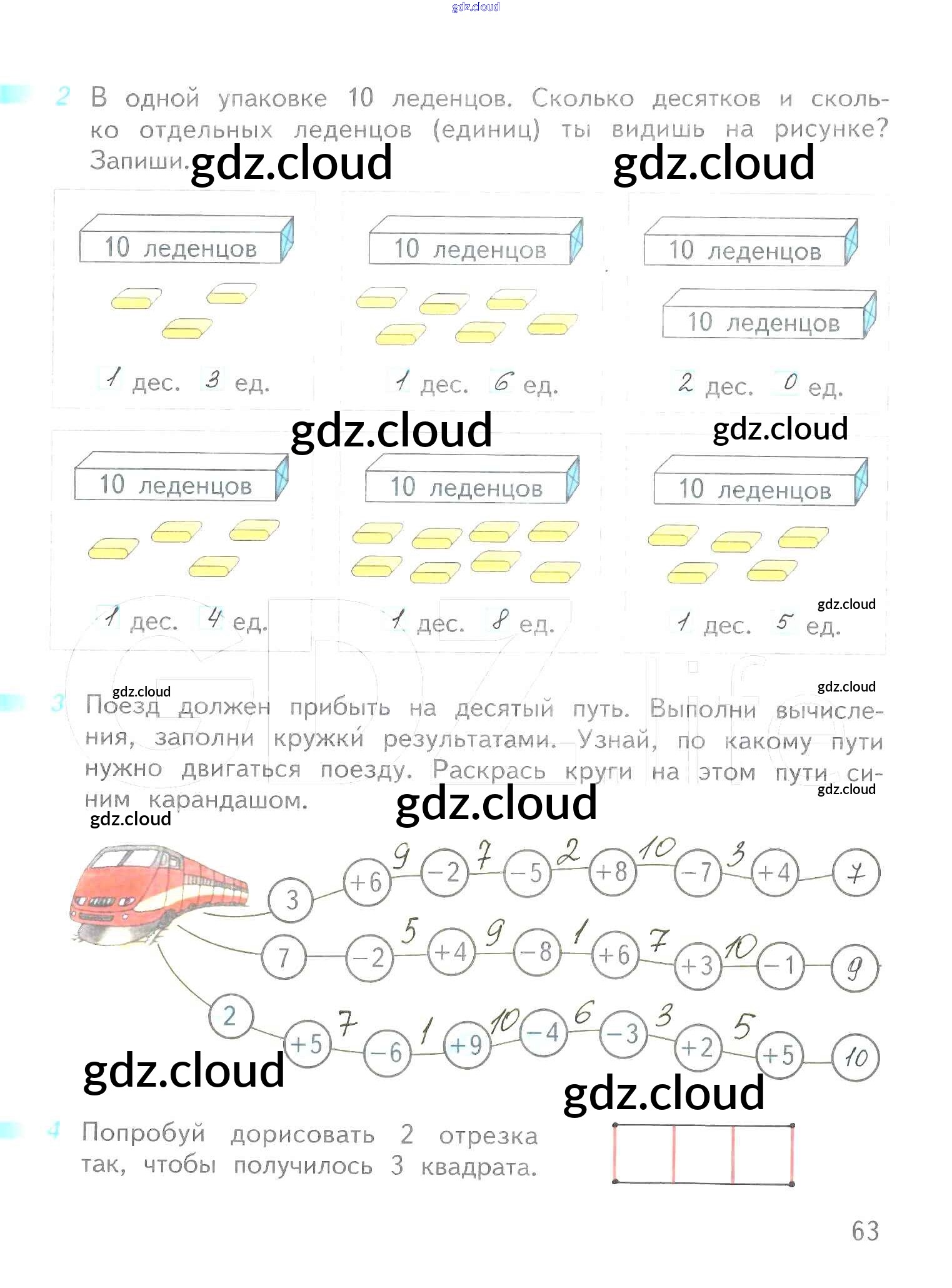 Ответ на задание 63 Рабочая тетрадь Математика за 1 (первый) класс Дорофеев, Миракова, Бука Перспектива 2016 Часть 1, 2