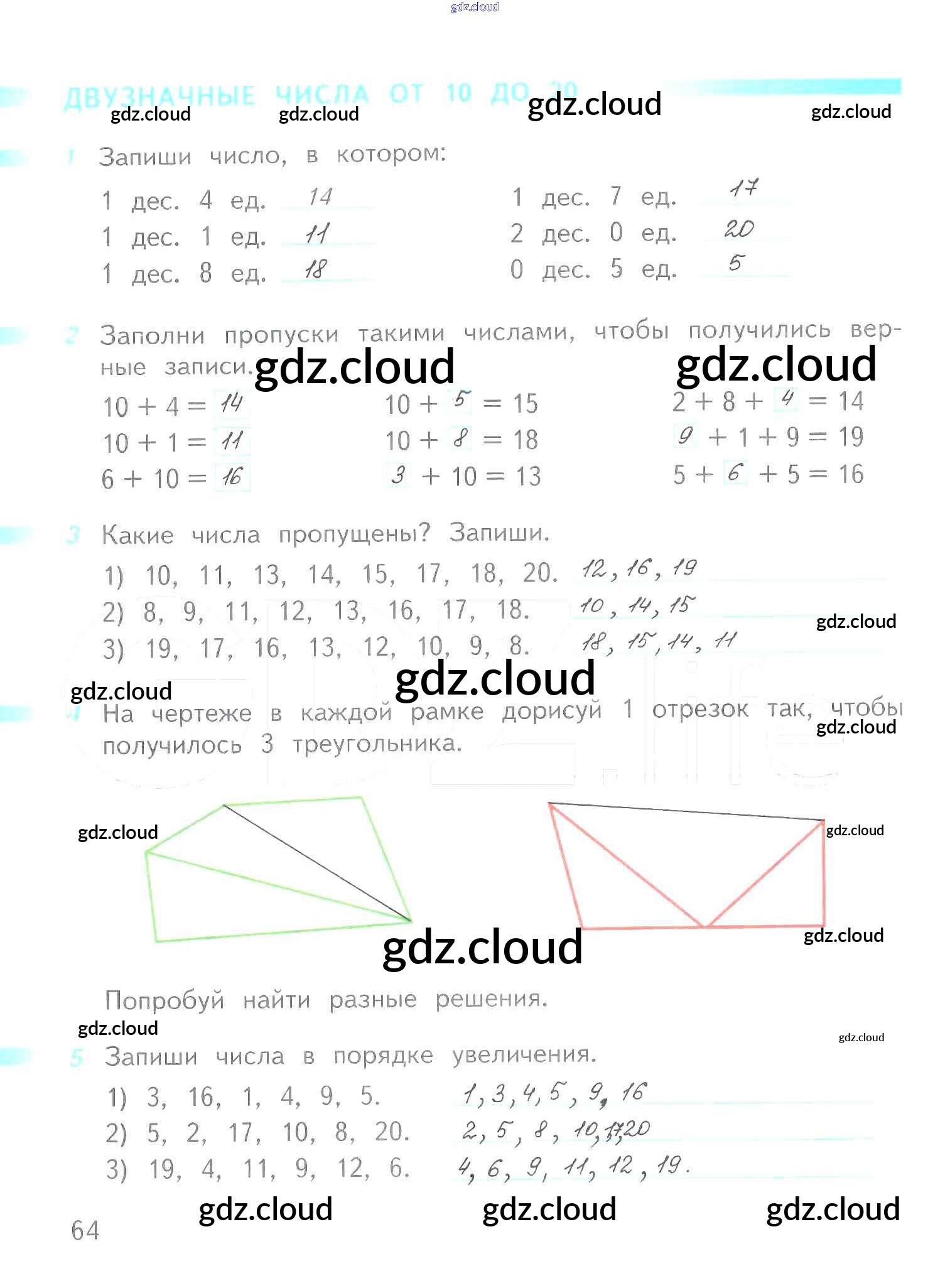 Ответ на задание 64 Рабочая тетрадь Математика за 1 (первый) класс Дорофеев, Миракова, Бука Перспектива 2016 Часть 1, 2