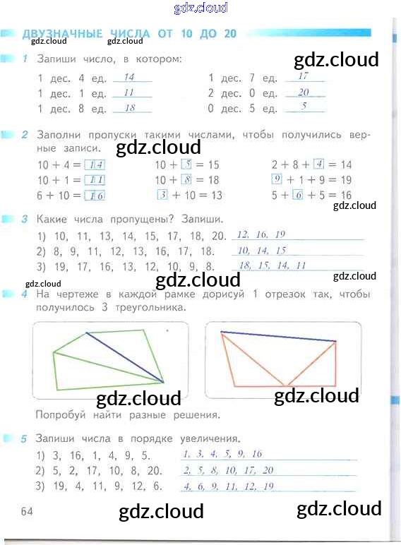 Ответы к части 2 (страницы) по Математике 1 класс Рабочая тетрадь Дорофеев Перспектива Часть 1, 2 Просвещение