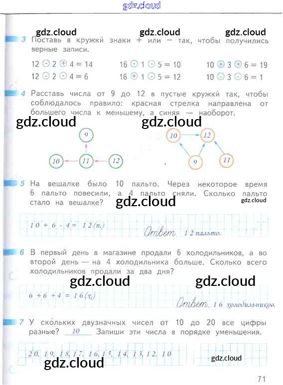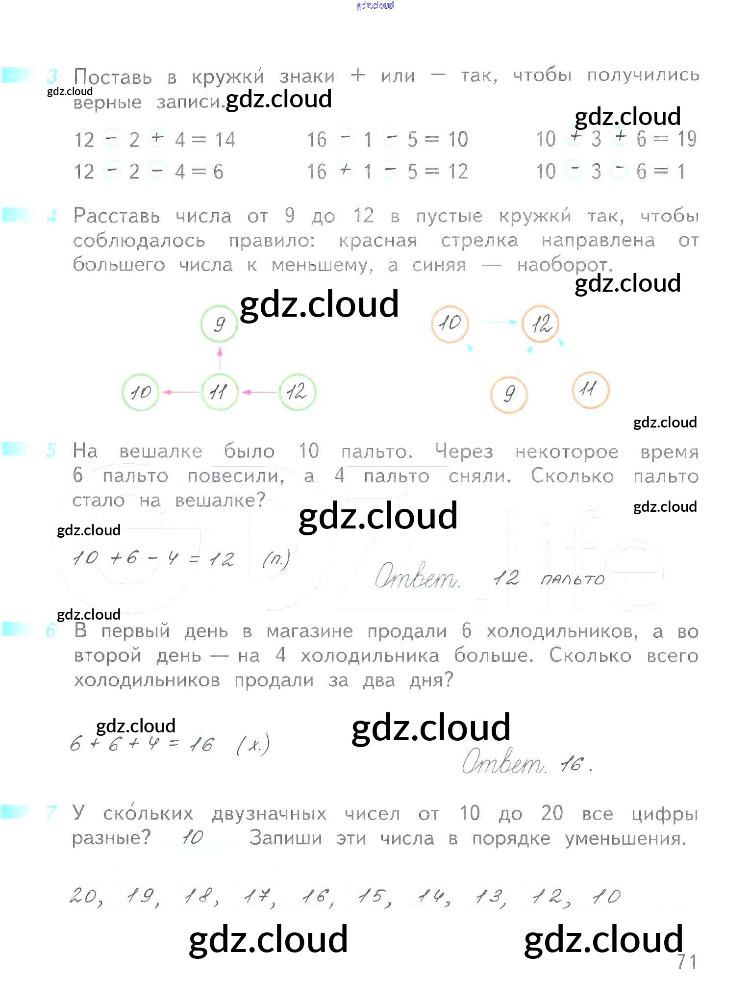 Ответ на задание 71 Рабочая тетрадь Математика за 1 (первый) класс Дорофеев, Миракова, Бука Перспектива 2016 Часть 1, 2