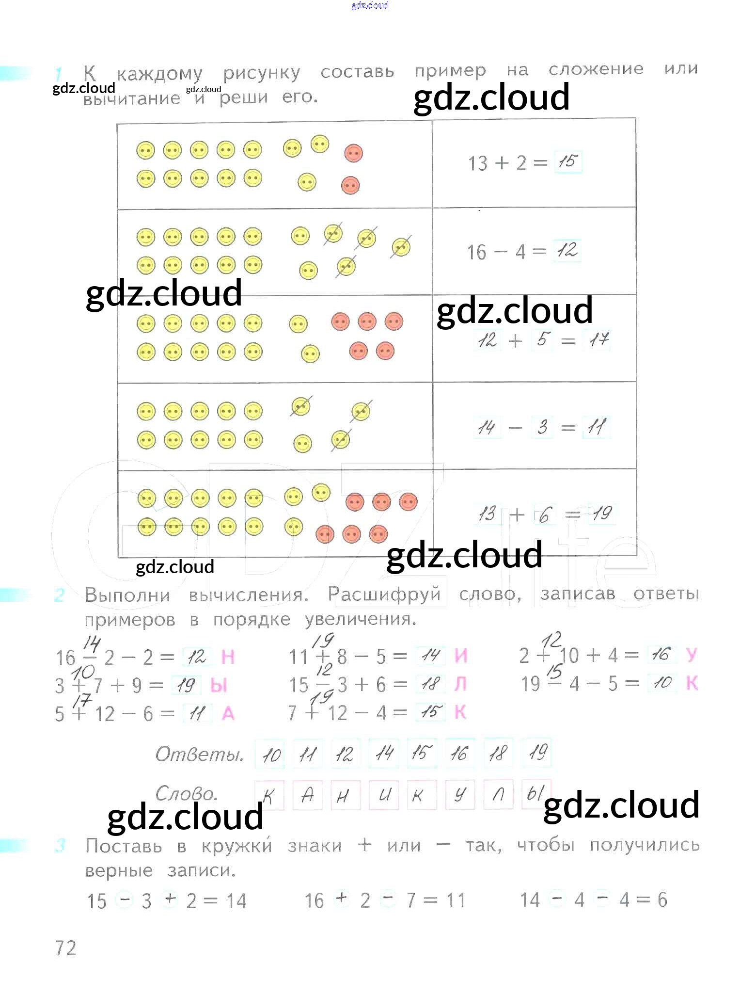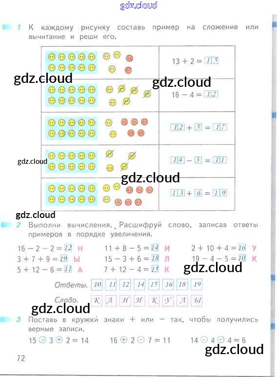 Ответ на задание 72 Рабочая тетрадь Математика за 1 (первый) класс Дорофеев, Миракова, Бука Перспектива 2016 Часть 1, 2