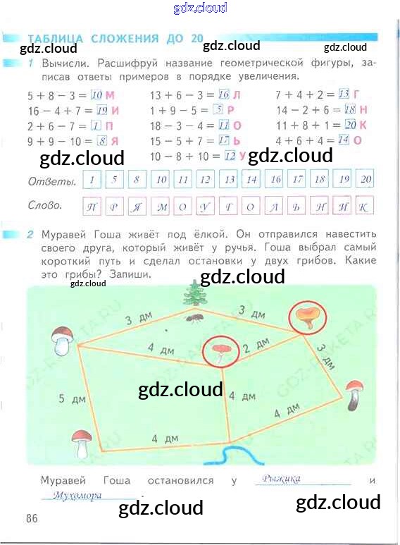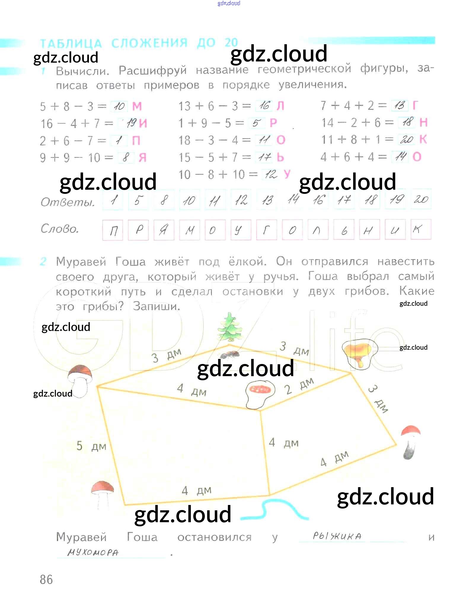 Ответ на задание 86 Рабочая тетрадь Математика за 1 (первый) класс Дорофеев, Миракова, Бука Перспектива 2016 Часть 1, 2